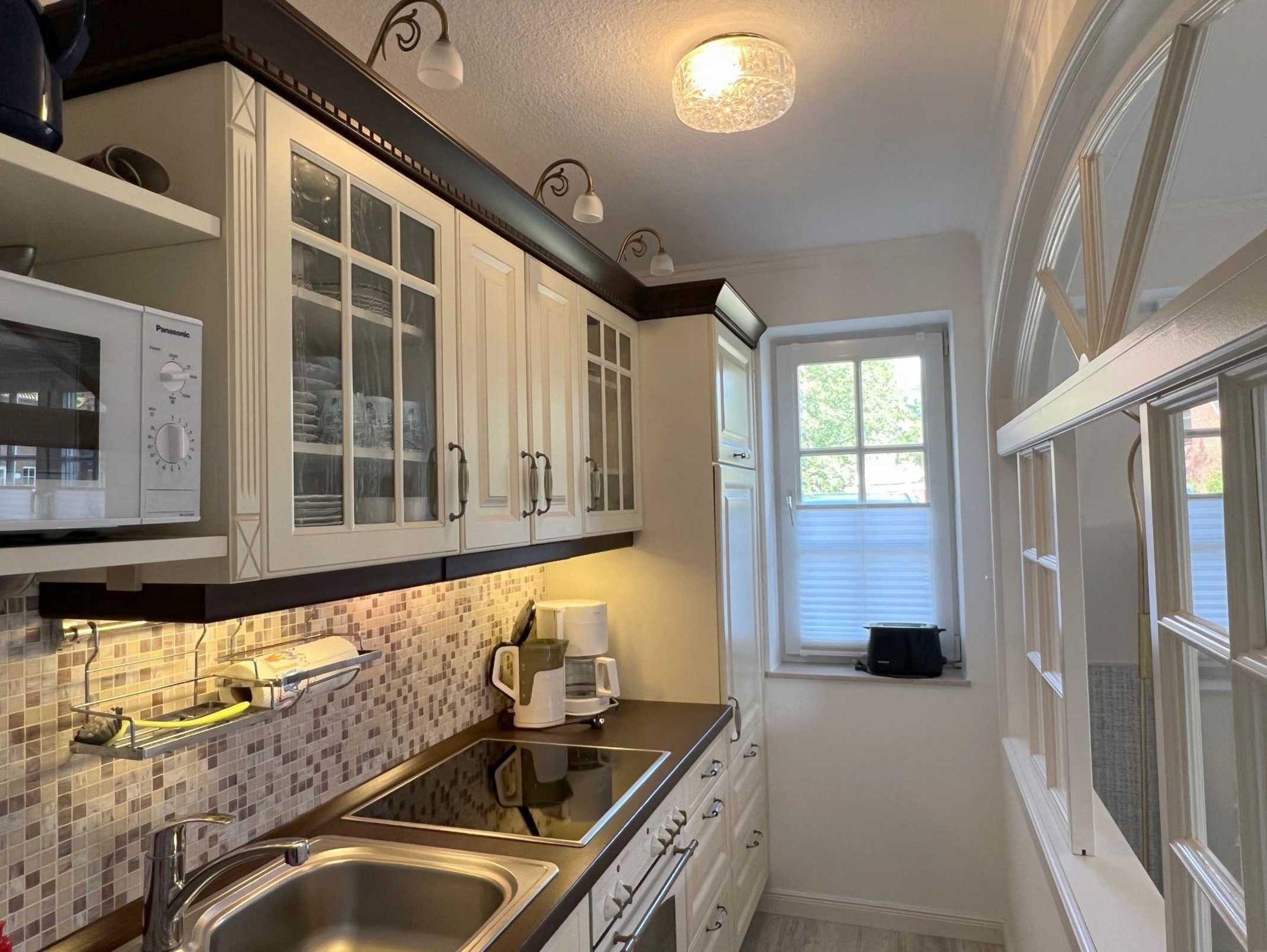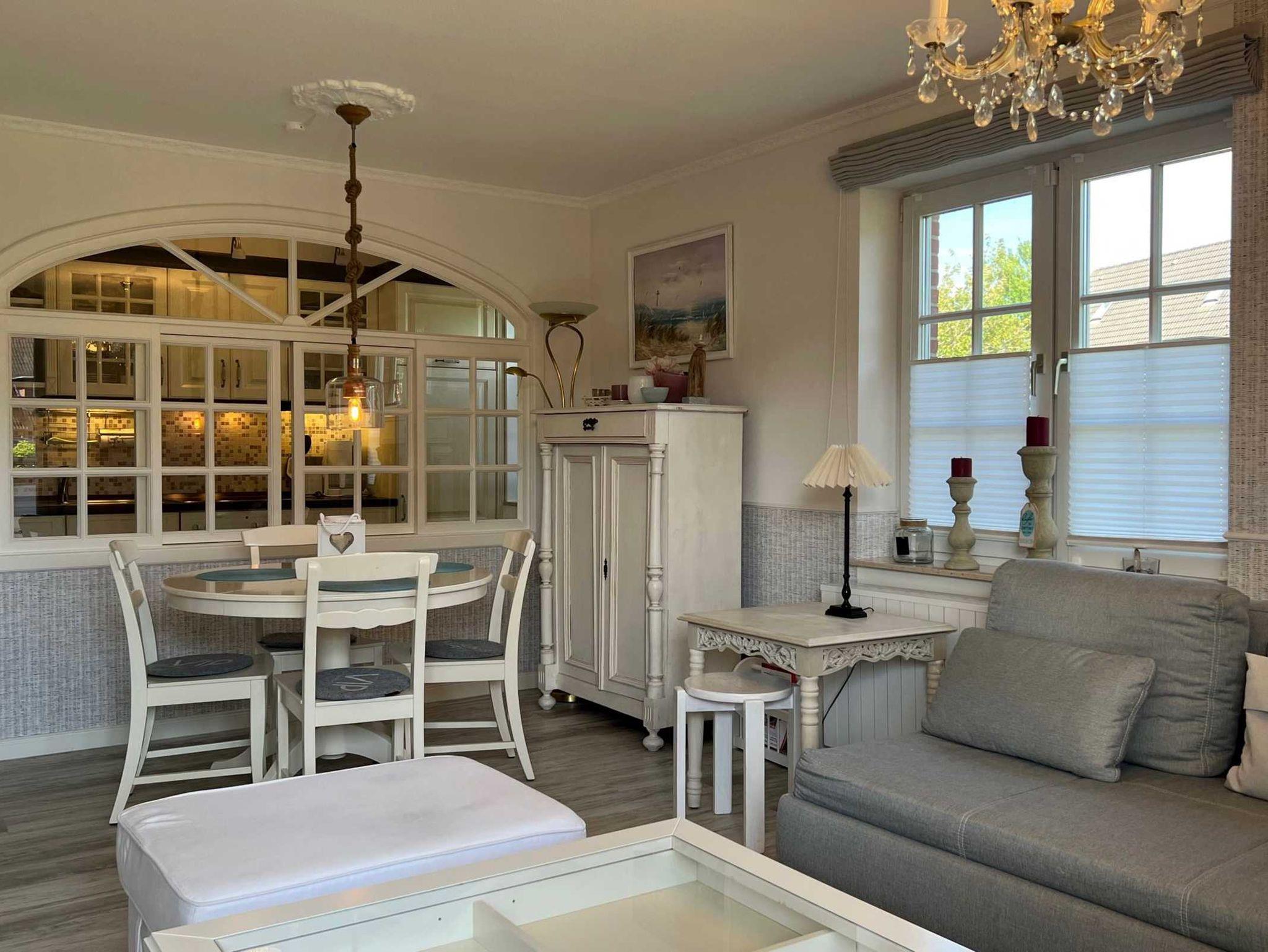 Wohlfühlatmosphäre in sehr geschmackvoller Ausstattung auf 45 qm! Geniessen Sie Ihren Urlaub in dieser, sehr hellen im Strandlook eingerichteten, 2-4 Personen Wohnung mit Terrasse. Genießen Sie die ruhige Lage im Ortsteil Dorf. Binnen weniger Gehminuten erreichen Sie das Zentrum im heimeligen St. Peter Dorf mit seinen Cafes, Restaurants, Galerien,kleinen Läden, Bäcker und einem Frische-Edeka Markt. Im Wohnzimmer befinden sich 2 Sofas, eins davon ist ein Schlafsofa, 1,90 x 2,00 m, mit hohem Liegekomfort, ein Couchtisch, 4K-Smart-Fernseher und 4K-Blu ray DVD-Player, Internetradio, sowie ein gemütlicher, runder Esstisch. Auch im schönen Schlafzimmer mit Doppelbett ist für Entertainment gesorgt, mit einem Smart-Fernseher inkl. DVD. Die Küche, im Landhausstil, ist getrennt vom Wohnzimmer, aber durch viele Fenster ( mit Durchreiche ) zwischen den beiden Räumen sichtbar. Dies gibt dem Wohnraum einen besonderen Flair. Pkw-Stellplatz auf dem Grundstück, Nr. 5.