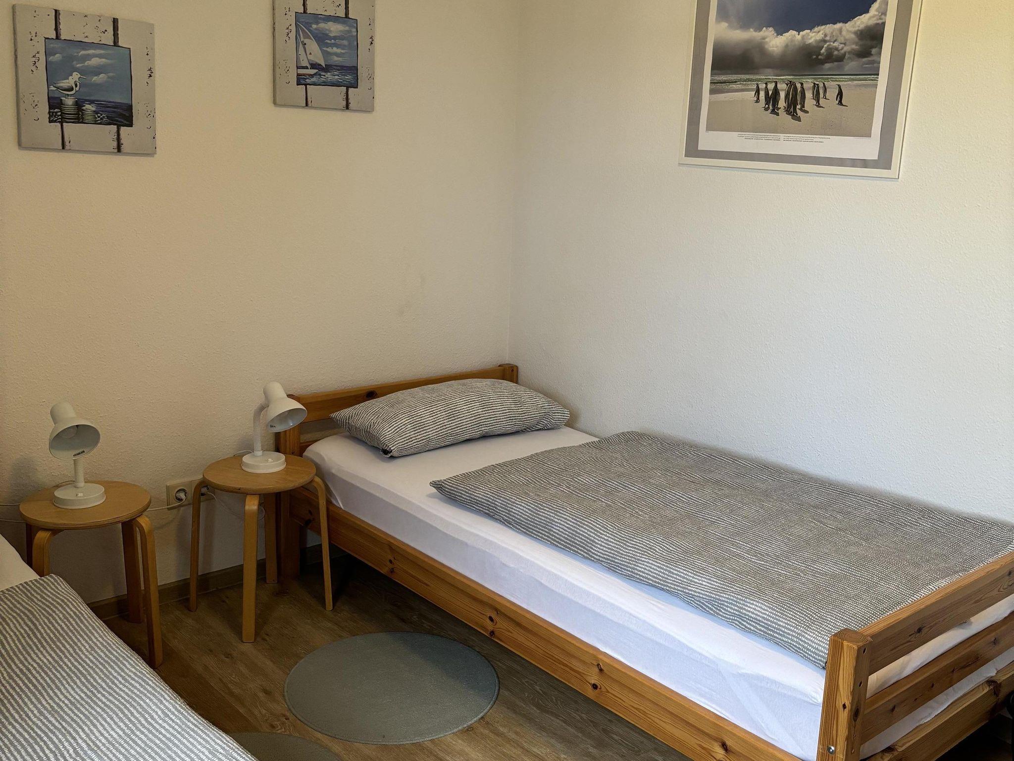 Schlafzimmer mit einem Doppelbett und ein weiteres Schlafzimmer mit 2 Einzelbetten.