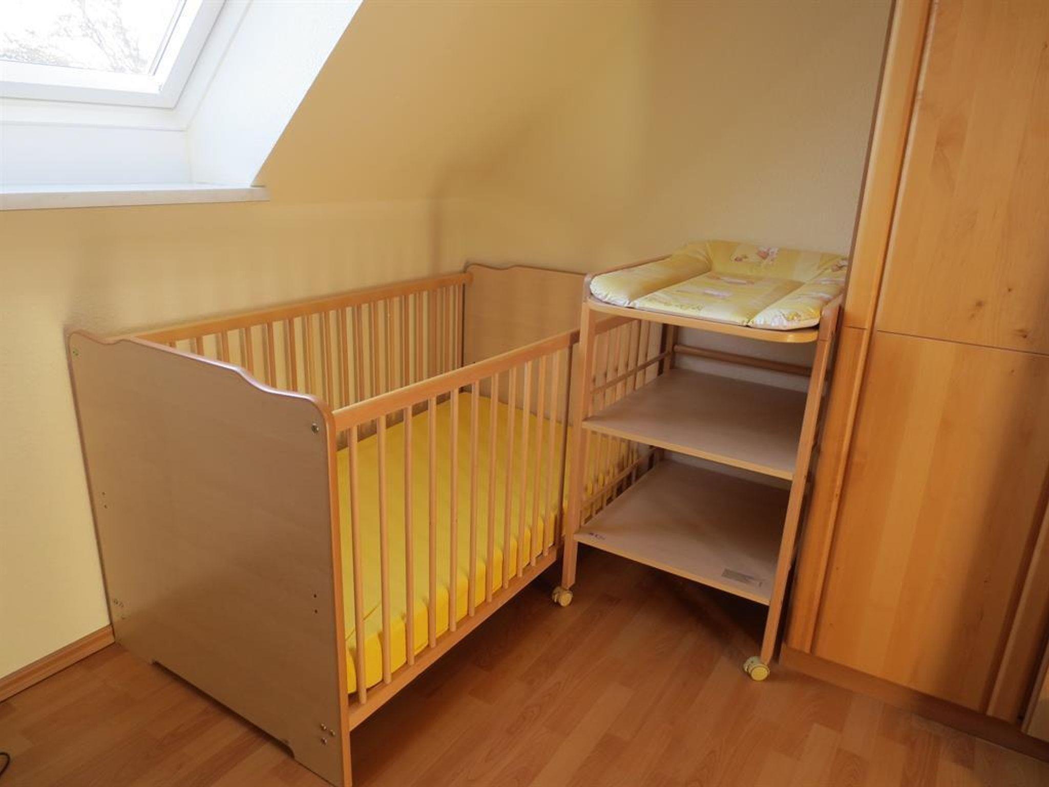 Im Obergeschoss gibt es 4 geräumige Schlafzimmer jeweils mit Doppelbett - eines zusätzlich mit Kinderbett und Wickeltisch.
