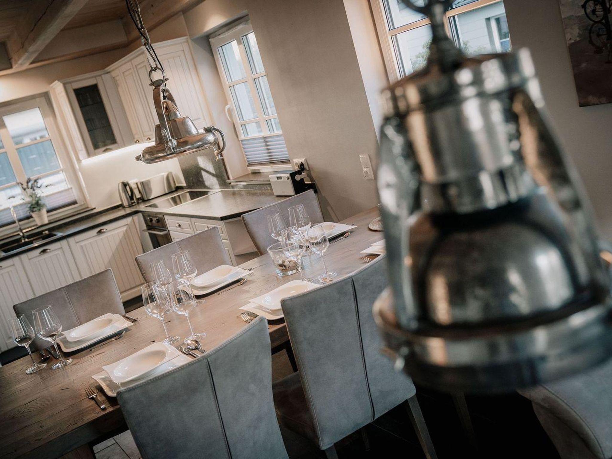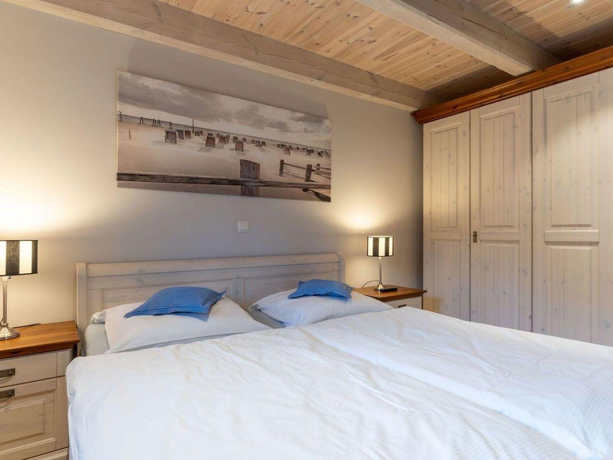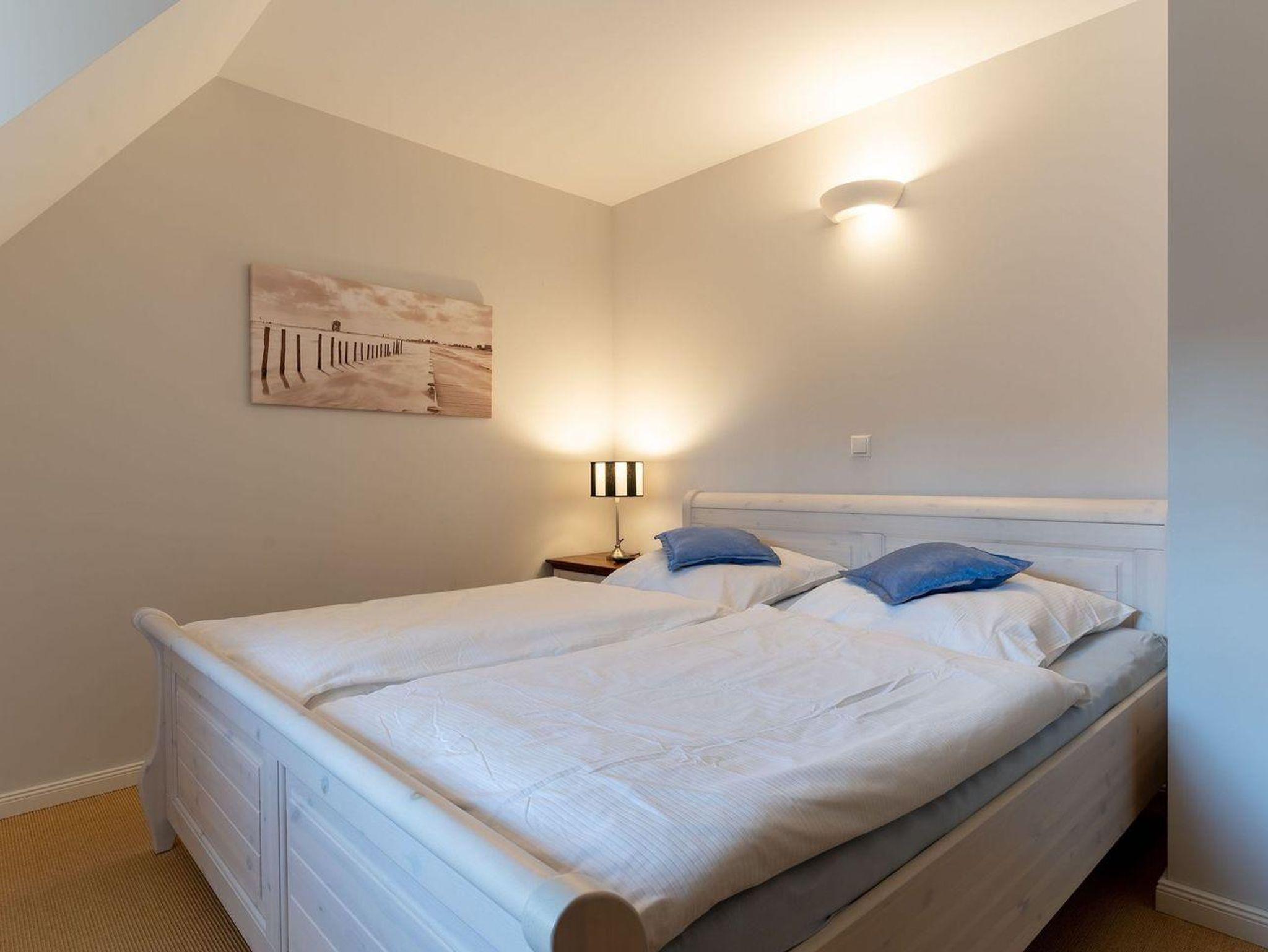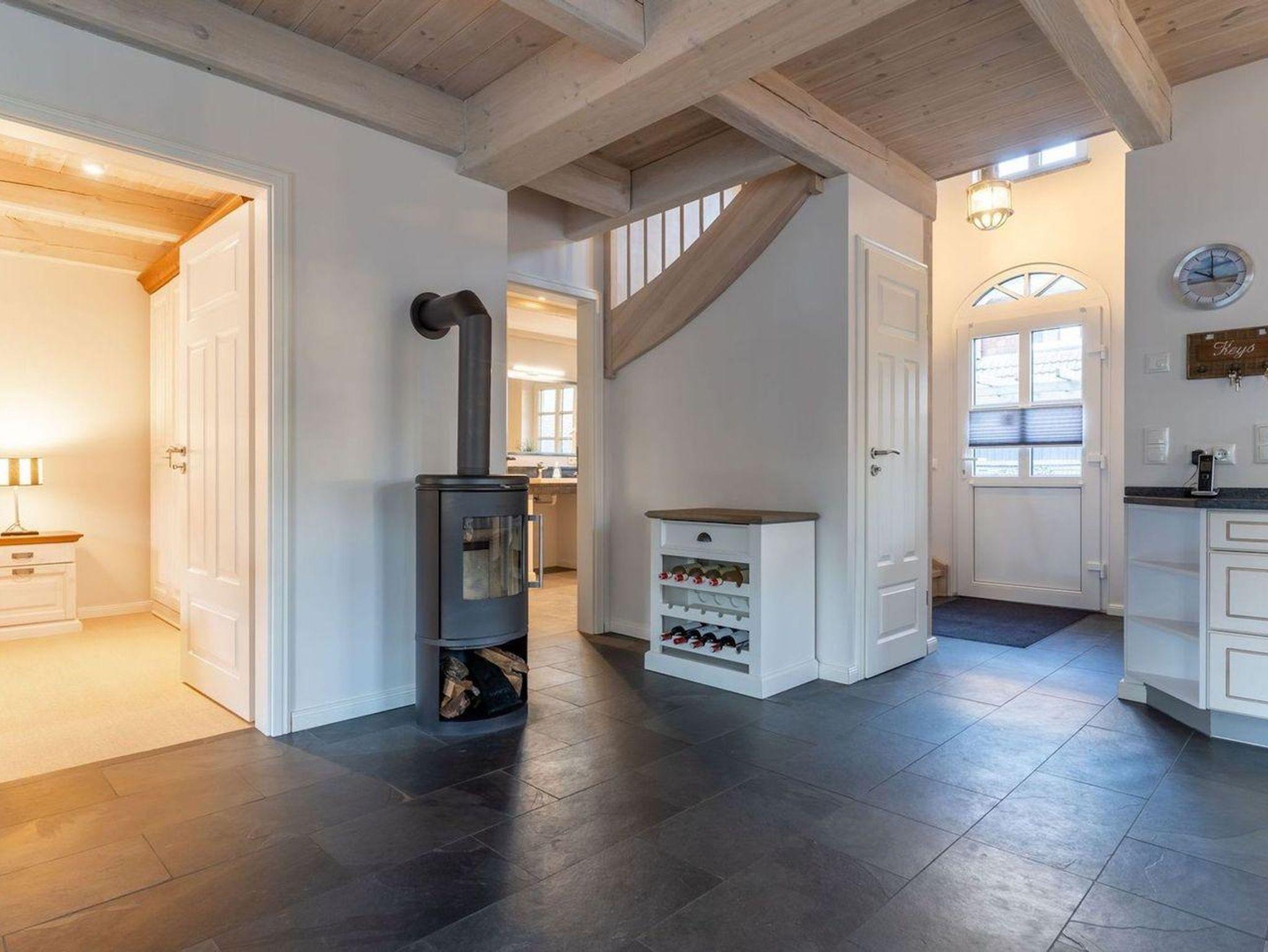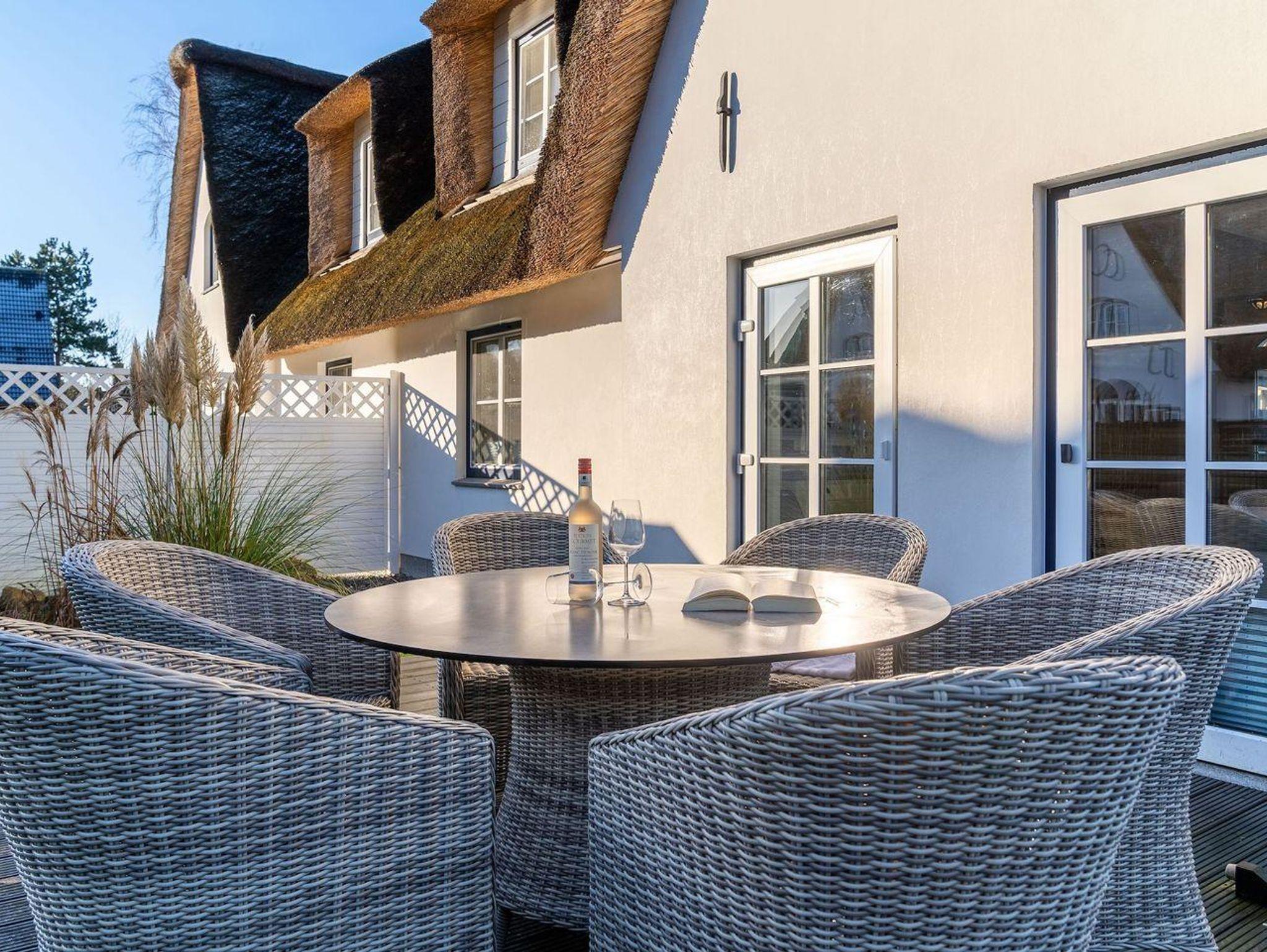 Die wunderschöne Haushälfte unter Reet verfügt über ca. 130 m² und bietet Platz für 1-6 Personen.Im Erdgeschoss befindet sich der lichtdurchflutete Wohnraum mit TV, Kamin, einer offenen Küche sowie einem stilvollen Essbereich.Die Küche ist ausgestattet mit Backofen und Geschirrspüler, sowie einem Esperto-Caffè-Automat, Toaster, Wasserkocher und den üblichen Küchenutensilien.An den Wohnbereich schließen sich ein Flur, ein Duschbad und ein Doppelschlafzimmer an.Das Erdgeschoss ist rollstuhlfreundlich.Über eine Holztreppe gelangt man in das Obergeschoss. Die beiden Schlafzimmer, jeweils mit einem Doppelbett sorgen für ruhevolle Erholung.Im ersten Stock befindet sich ausserdem ein weiteres Duschbad sowie eine Sauna.