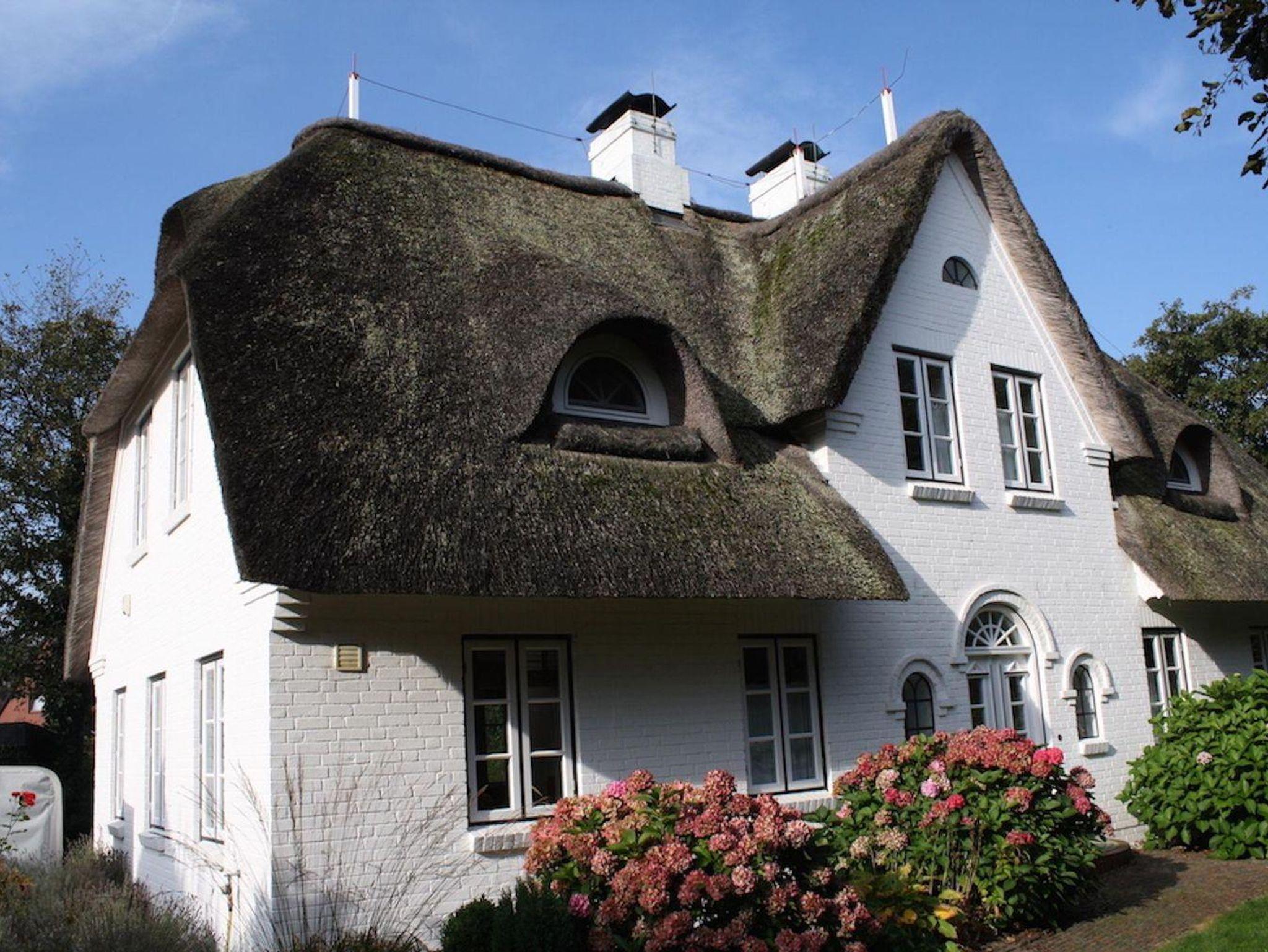 Reetdachhaus Nordlicht LUV in St. Peter-Ording bietet maritimen Charme und großzügigen Garten für erholsamen Urlaub.