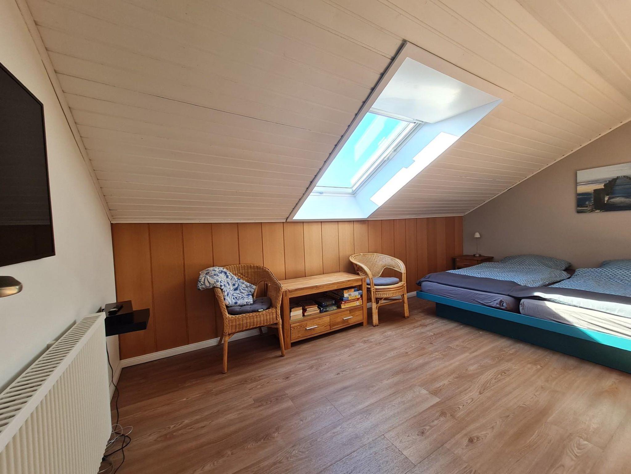 Mit einer Fläche von ca. 70 m² bietet sie ausreichend Platz für bis zu 5 Personen und erstreckt sich über den 1. Stock sowie das Dachgeschoss.