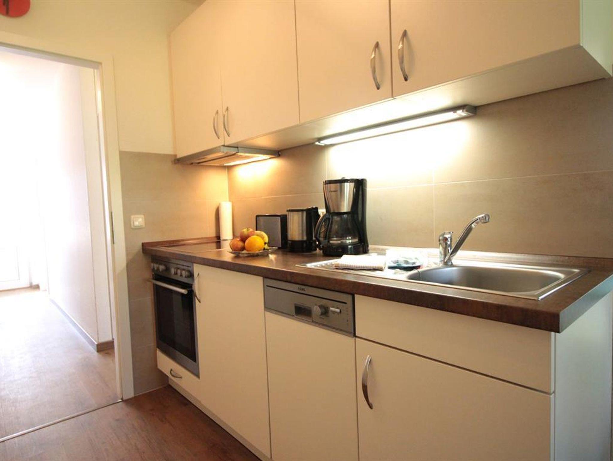 sowie moderne Essecke. 1 separater Schlafraum. Vollständig ausgestattete Küche (u.a. mit Geschirrspüler, Ceran-Kochfeld, Backofen usw.).