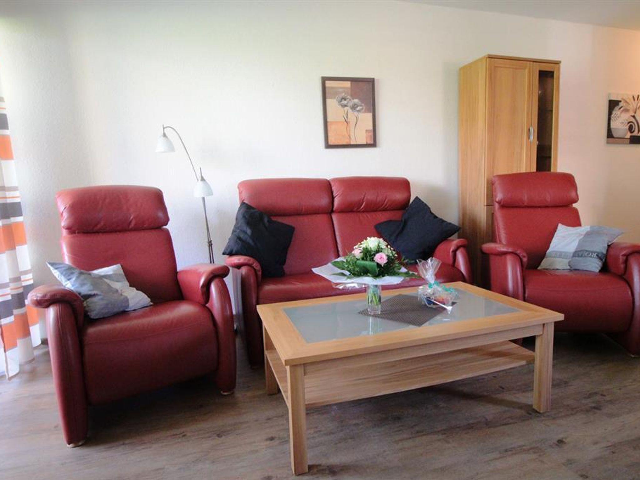1 Wohnschlafraum mit Schrankbetten sowie Kabel-Farb-TV (Flachbild), Radio/CD-Player, neue Ledergarnitur (2,5 Sofa und 2 Relaxsesseln)
