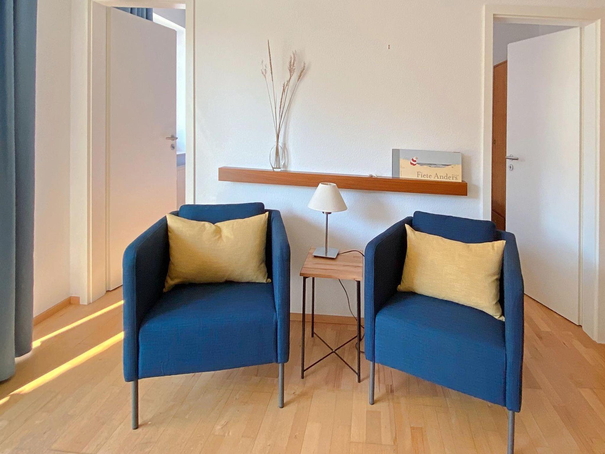 In der 1. Etage bietet Ihnen die freundliche 2-Raum-Ferienwohnung Haus Nordsee Nr. 05 Platz für bis zu 4 Personen. Der behaglich ausgestattete Nichtraucher-Wohnbereich besitzt neben dem Schrankdoppelbett im Wohnzimmer ein separates Schlafzimmer mit einem weiteren Doppelbett. Im modernen Bad finden Sie nicht nur eine Waschmaschine, Sie können dort auch die Musik aus dem Wohnzimmer genießen. Der großzügige Balkon in nordwestlicher Ausrichtung lädt zum Entspannen ein.