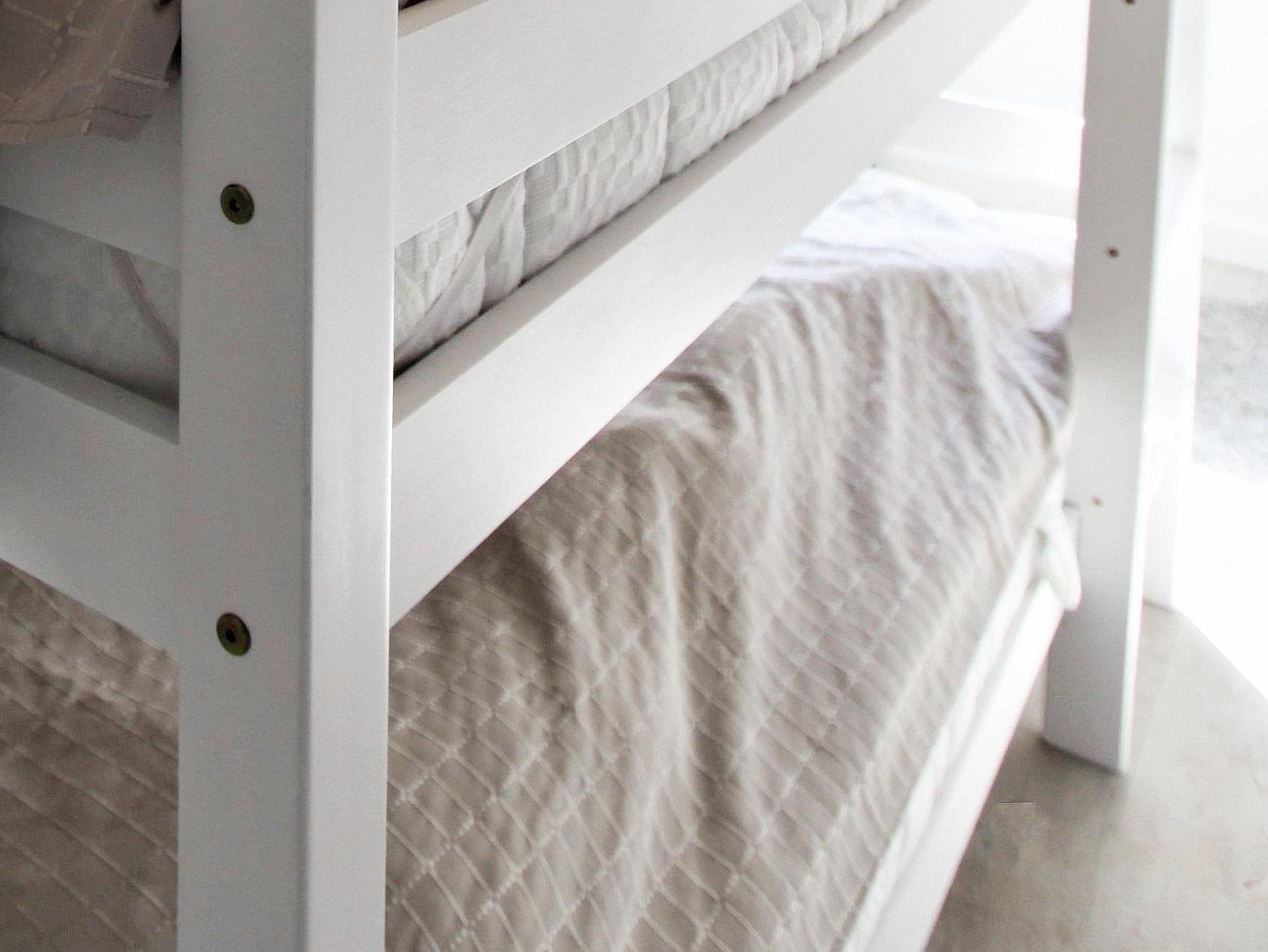 Vom Wohnzimmer betritt man zwei kleine miteindener verbundene Schlafzimmer mit einem Doppelbett (je 0,90 x 2,00m), einem Etagenbett ( 0,90 x 2,00m) im Kinderschlafzimmer und dem gemeinsam zu nutzenden Kleiderschrank ( siehe Zeichnung).