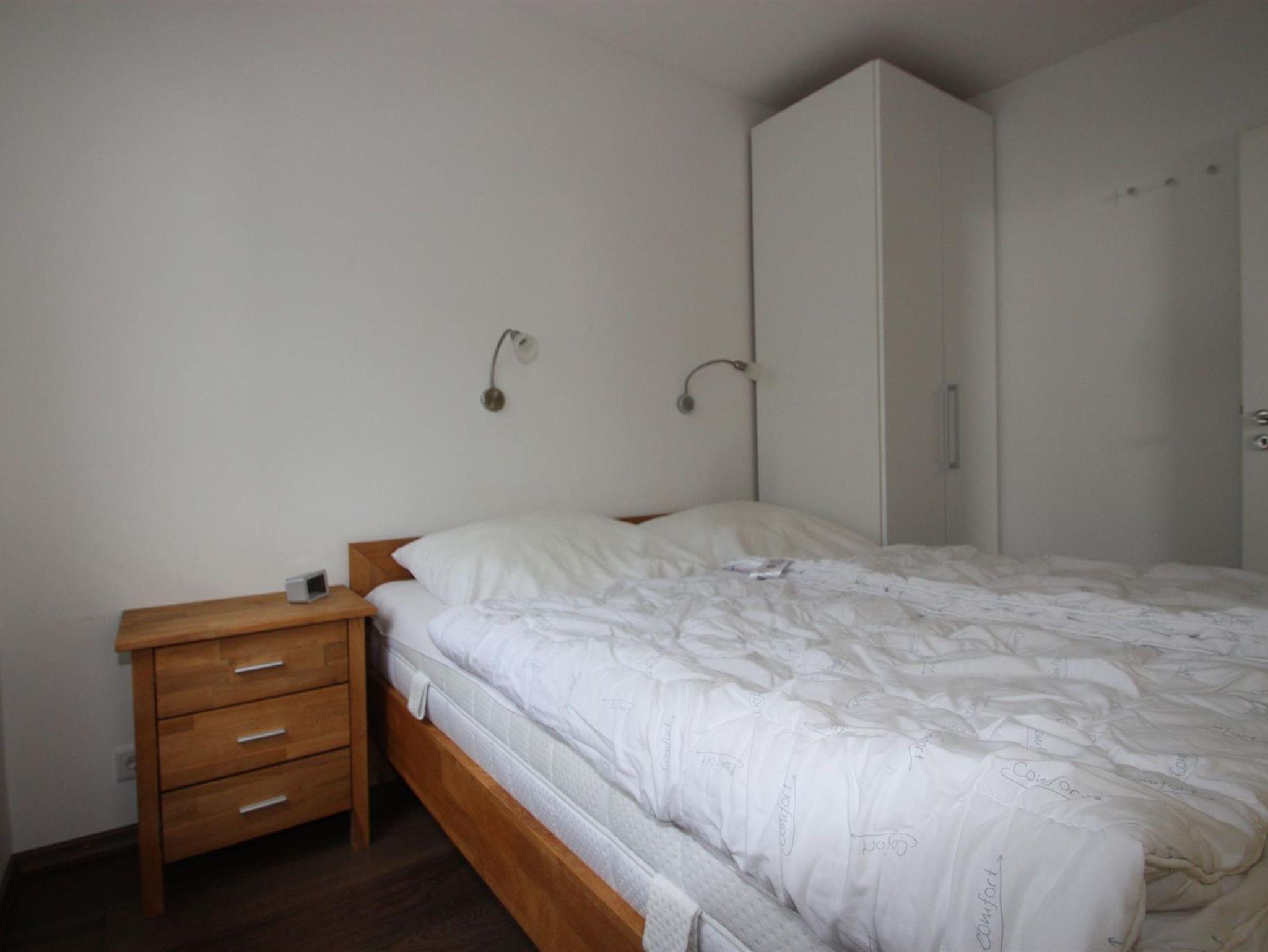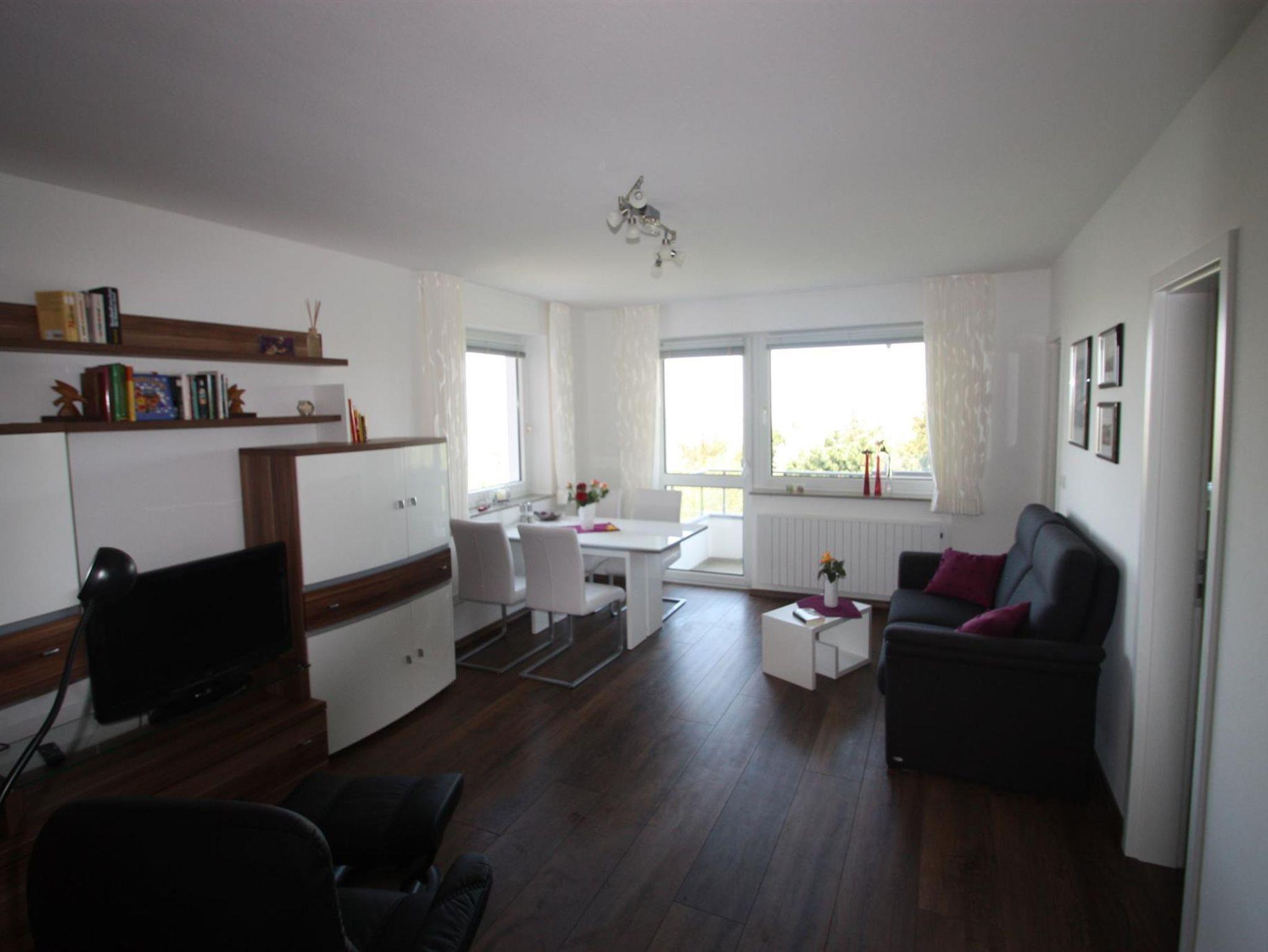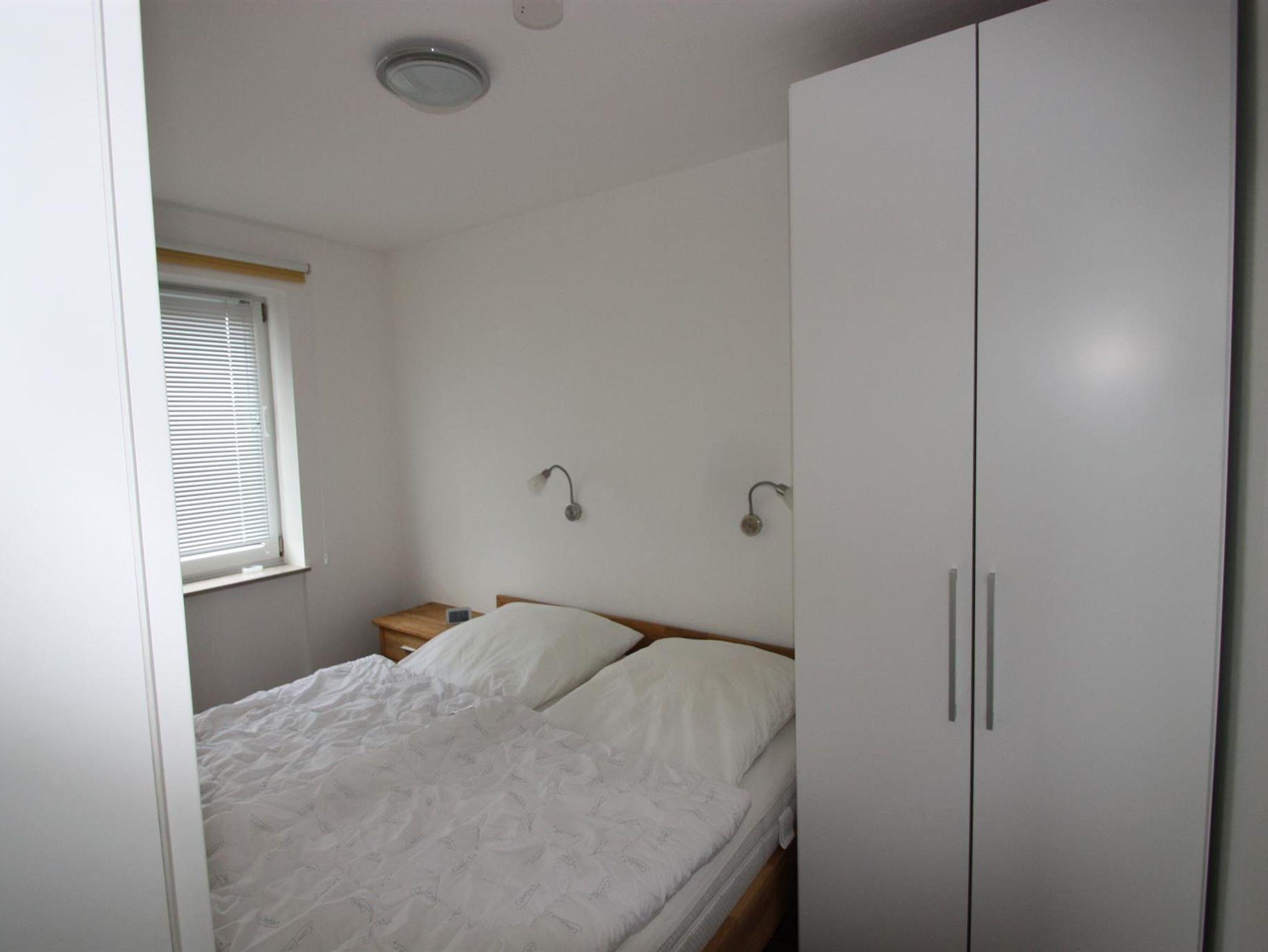 Die drei 8-Geschoss-Häuser liegen direkt am Deich, inmitten eines Kiefernwaldes, strandnah am Ende der Kurpromenade, Liegewiese an den Häusern, Fahrstuhl, Waschräume mit Münzwaschmaschine und Münztrockner, Tennis-u. Fahrradraum, eine Sauna ist im Haus vorhanden. E-Heizung, PKW-Stellplatz Nr. 40. Die Wohnung ( ca. 50,5 qm ) ist im 5. Stock mit Seeblick, Wohnzimmer mit LCD-Flach-TV, Küche mit 4 Platten-Ceranfeld, Geschirrspüler u. Backofen, 1 Schlafzimmer mit Doppelbett, ein weiteres Schlafzimmer mit Etagenbett, Dusche/WC, Balkon, Abstellraum. Internet, Haustiere sind erlaubt. Nichtraucherobjekt