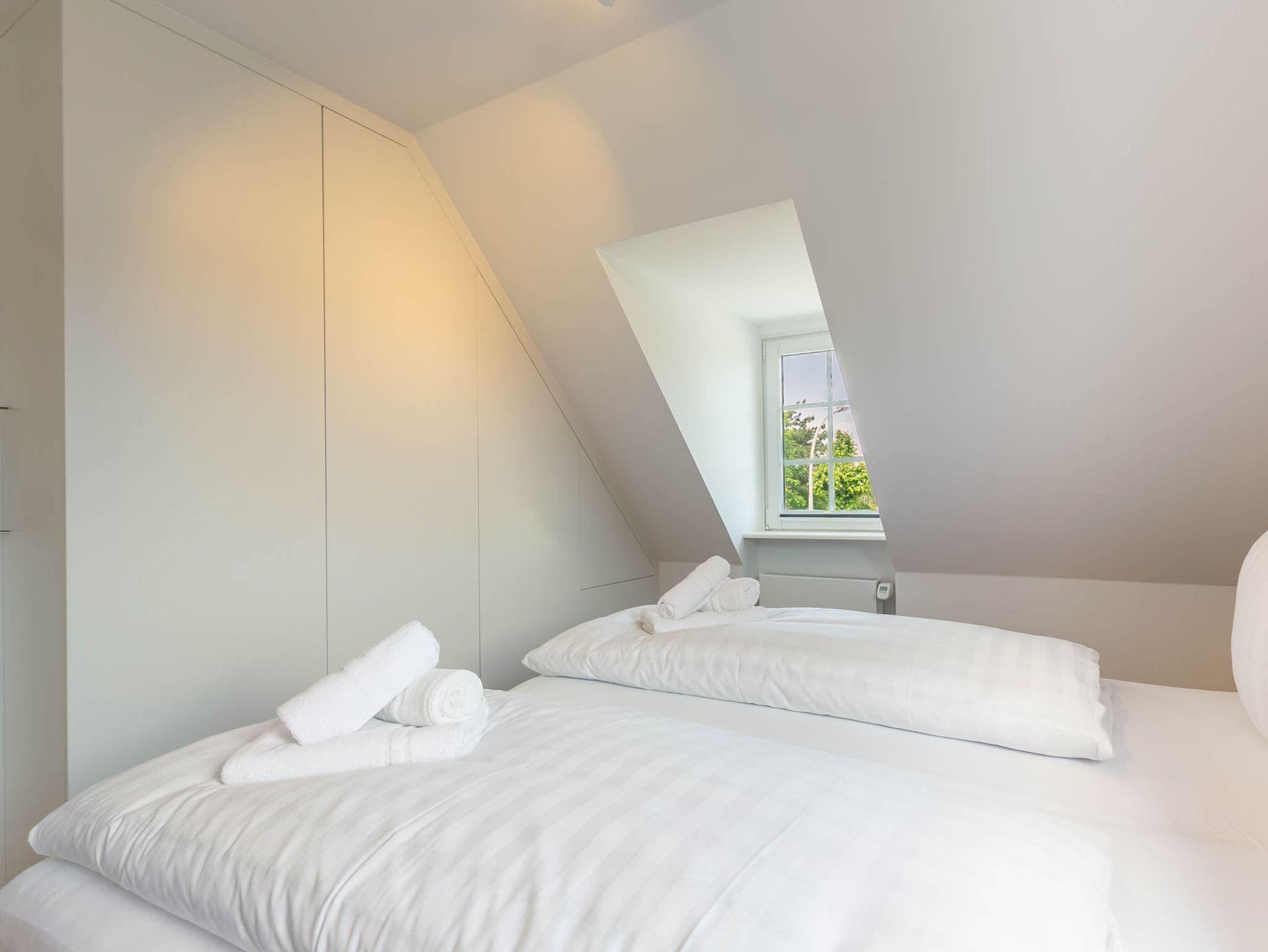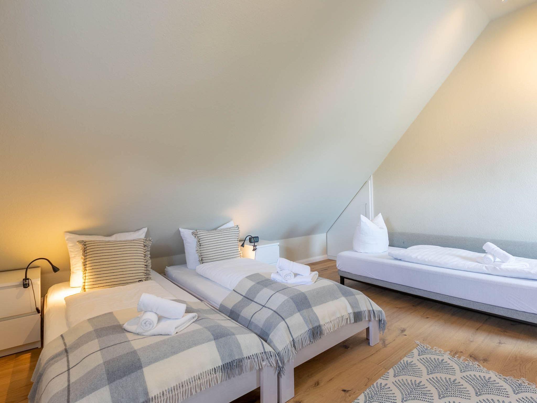 2. Schlafzimmer mit 2 Einzelbetten (je 90x200cm), (Schlaf-) Sofa (90x200cm), Einbauschrank, SMART-TV (nur Streaming) und Schreibtisch.