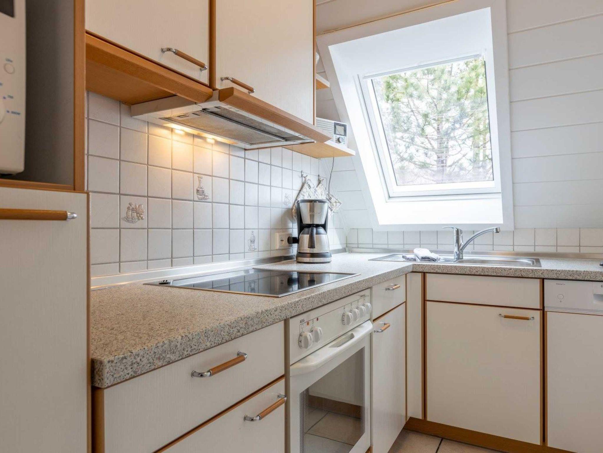 2. Küche (OG) mit Backofen, Mikrowelle, Kühlschrank mit Gefrierfach und Geschirrspüler.