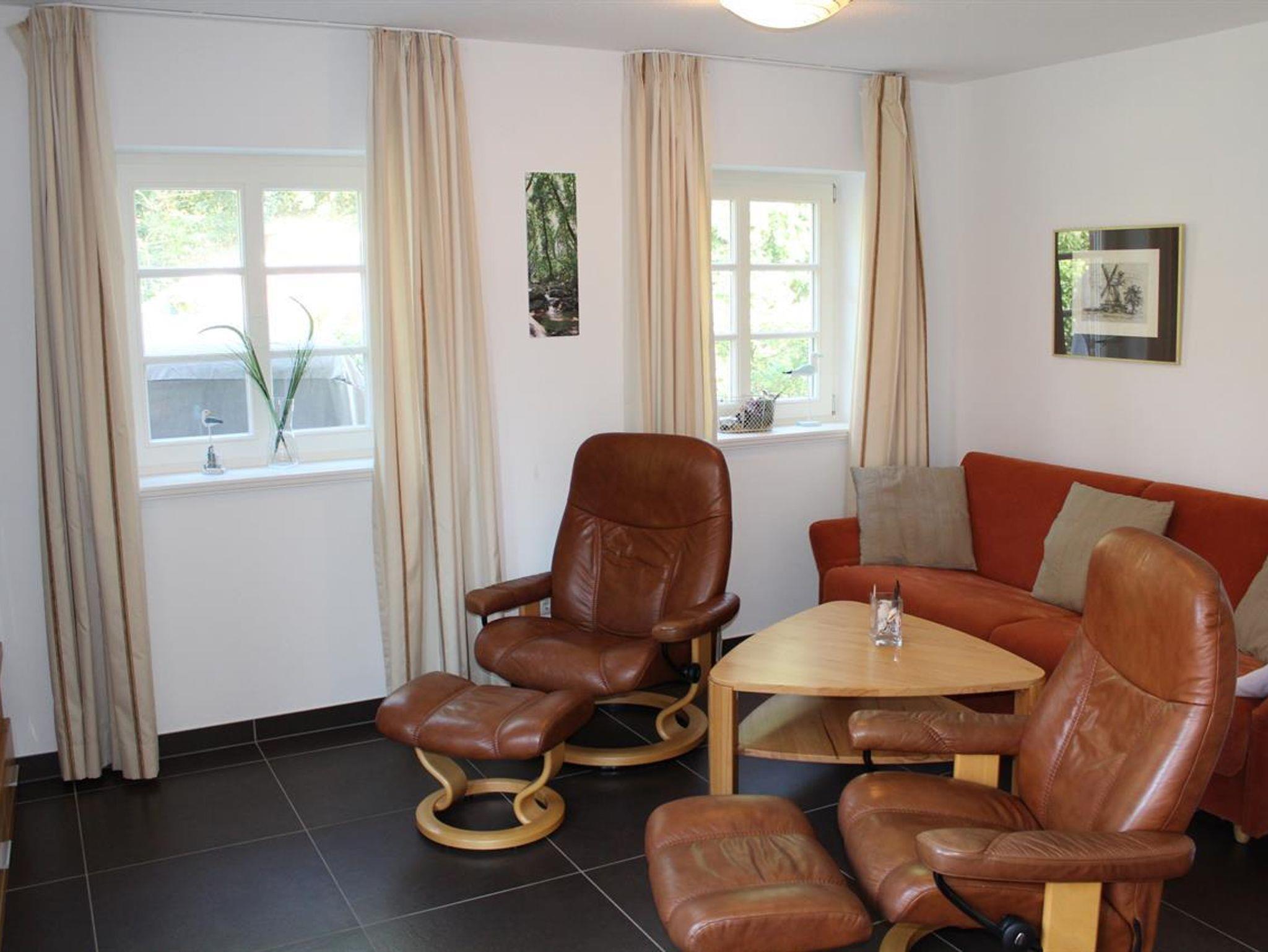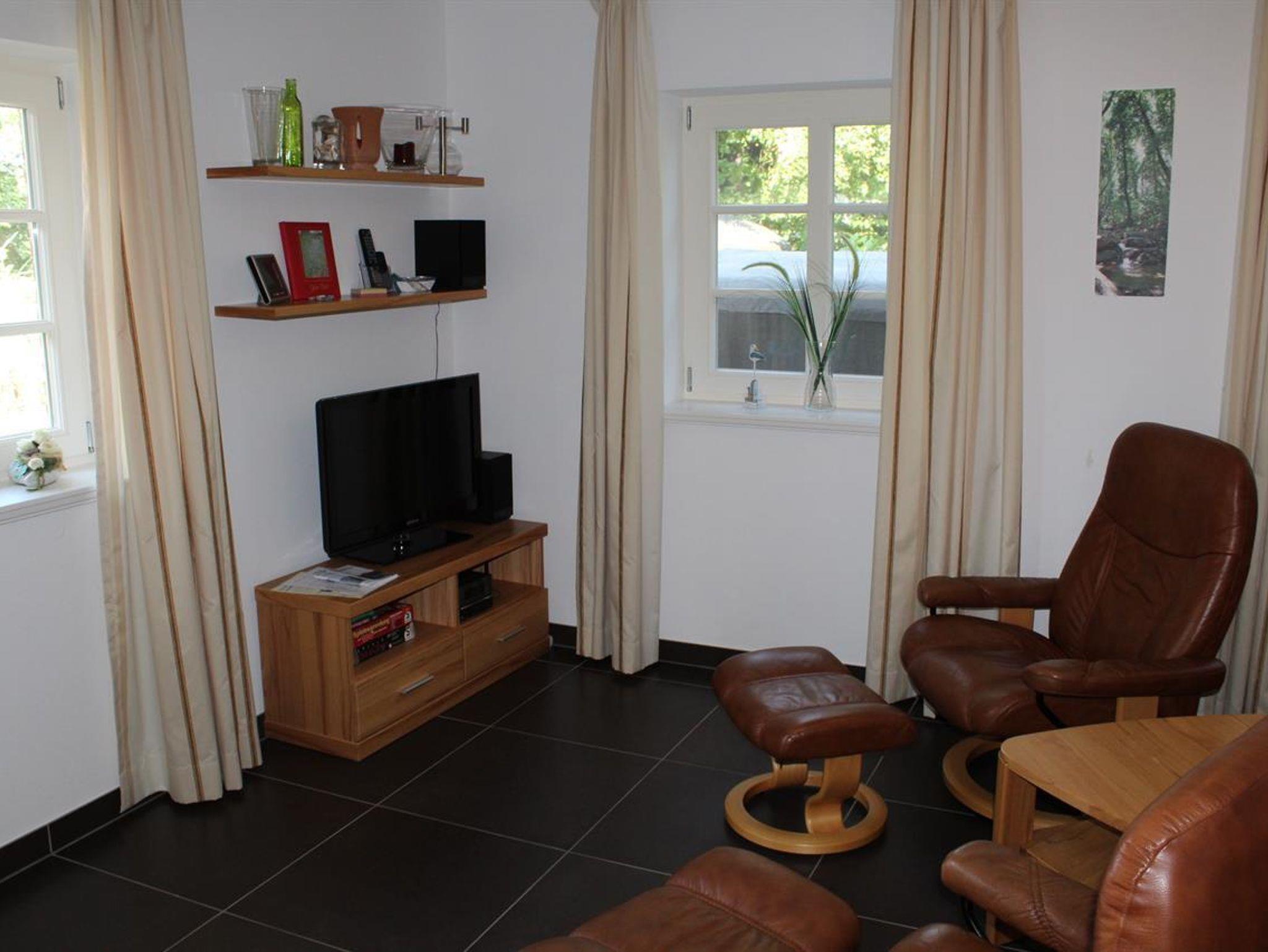 Exclusive Ausstattung, höchster Wohnkomfort. Böden: Fliesen und Laminat, ERDGESCHOSS: Diele, Duschbad/WC, Kl. Wohn-Schlafraum mit Schlafcouch, Wohnraum mit Sitzecke, Eßecke, LCD-SAT-TV, Stereoanlage, Küche mit 4-Platten- Herd (Ceran), Gefrierschrank, Backofen, Geschirrspüler, Mikrowelle.Möbl. Südwest-Terrasse. OBERGESCHOSS: Flur, Duschbad/ WC,Waschmaschine und Trockner. 2 Schlafräume mit je 2 Betten (90x200), W-LAN kostenlos. NICHTRAUCHEROBJEKT. PKW-Platz auf dem Grundstück und Gartenhaus für Fahrräder. In allen Räumen Insektenschutz. Das Grillen mit Holzkohle und offenes Feuer wegen der Brandgefahr nicht erlaubt. Das Laden eines E-Auto und/oder Hybrid-Auto an der Stromversorgung des Hauses ist nicht gestattet. Die Wallbox-Nutzung ist kostenpflichtig. Wenn Sie die Wallbox nutzen möchten, geben Sie dieses bitte bei der Buchung mit an.