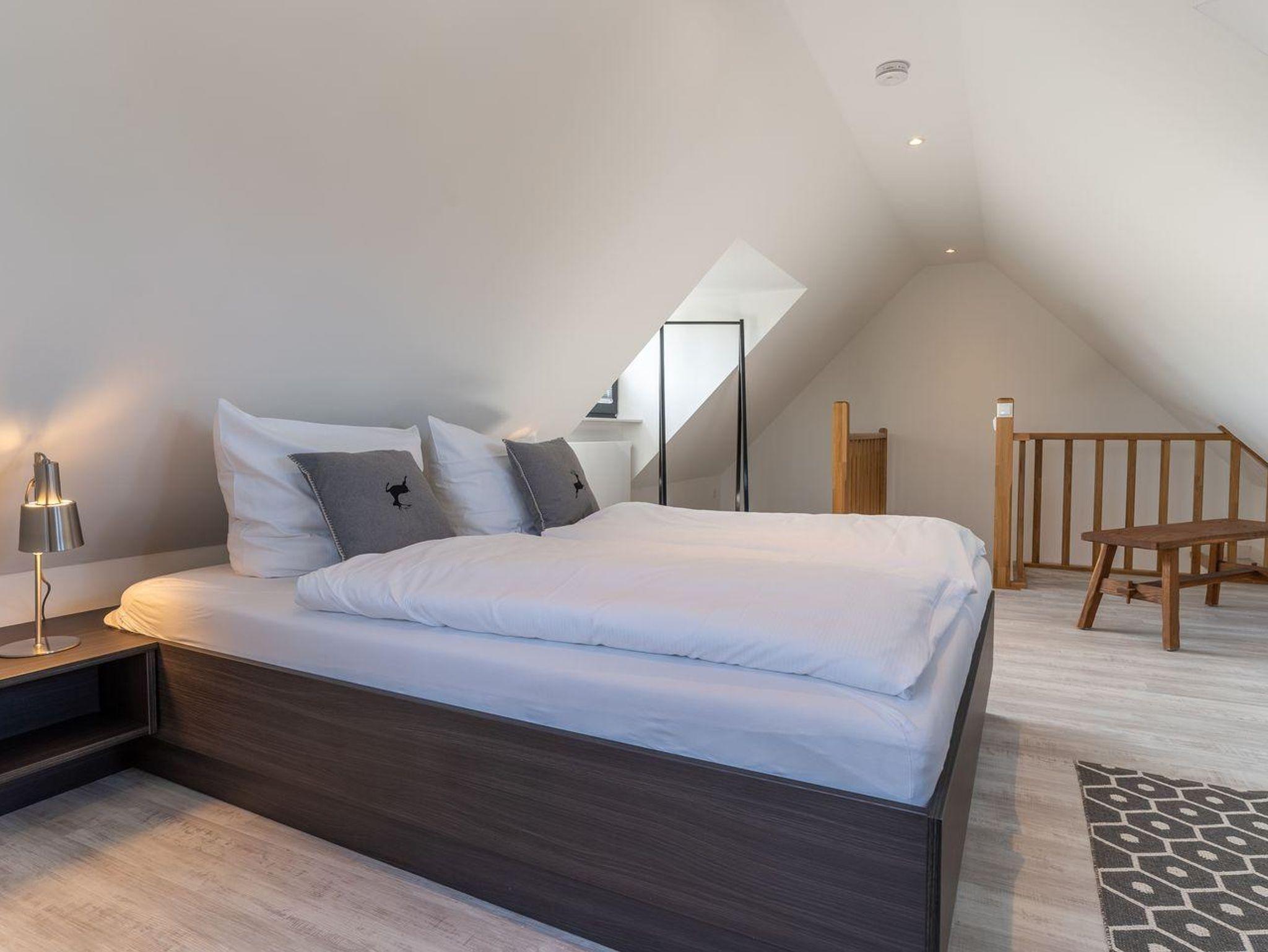 Das Schlafzimmer mit einem 160er Doppelbett und LCD-Flach-TV sorgt für ruhevolle Erholung und ist über eine Treppe vom Wohnraum zu erreichen.