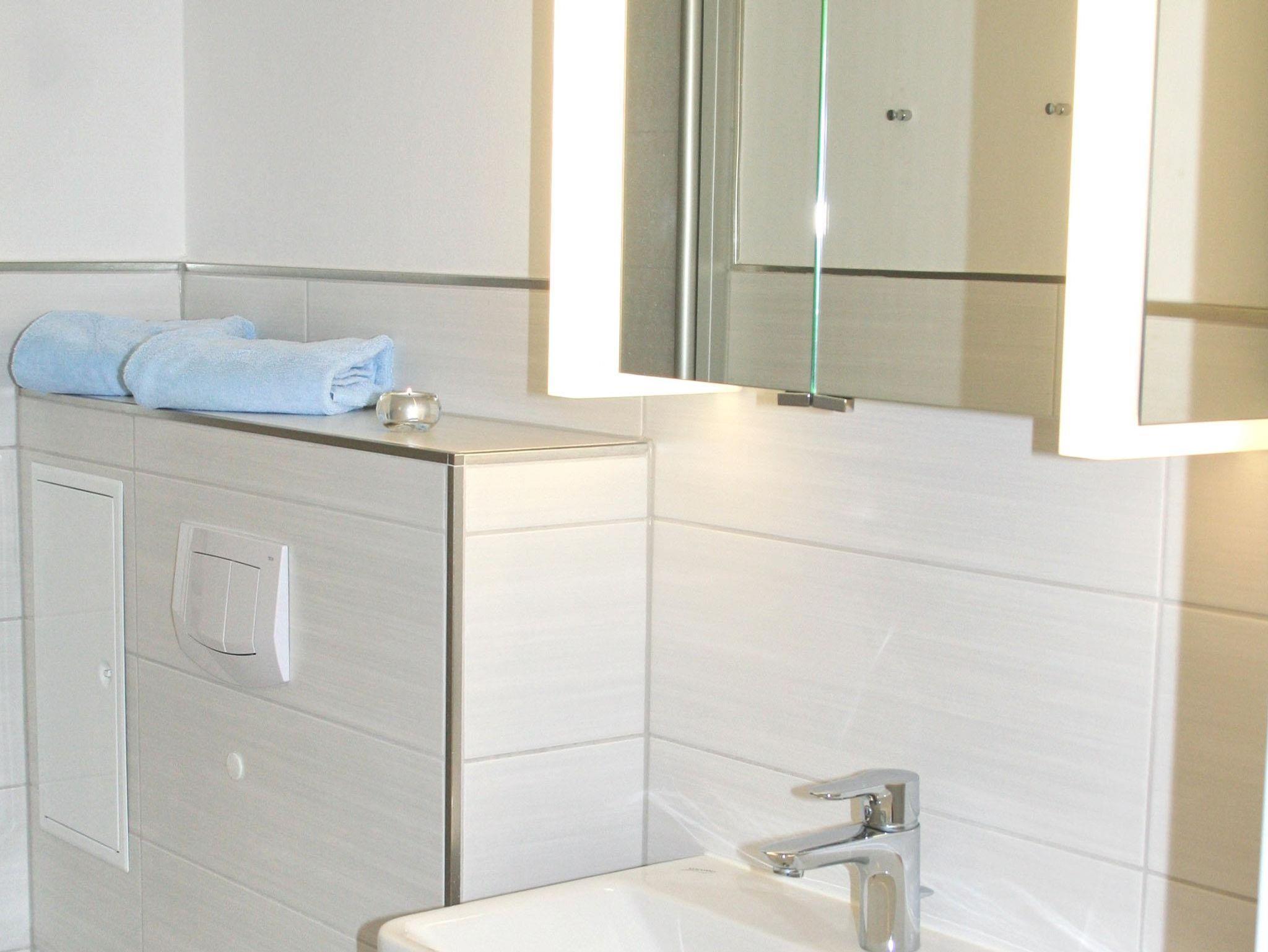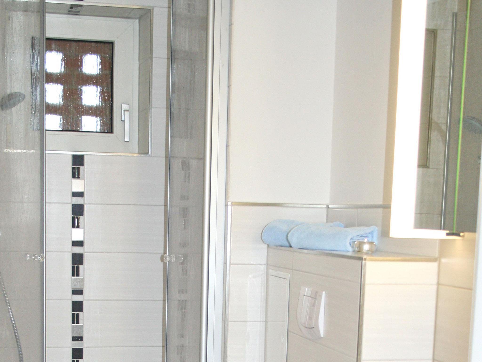 Bad: Dusche, Waschbecken, WC, Duschkabine