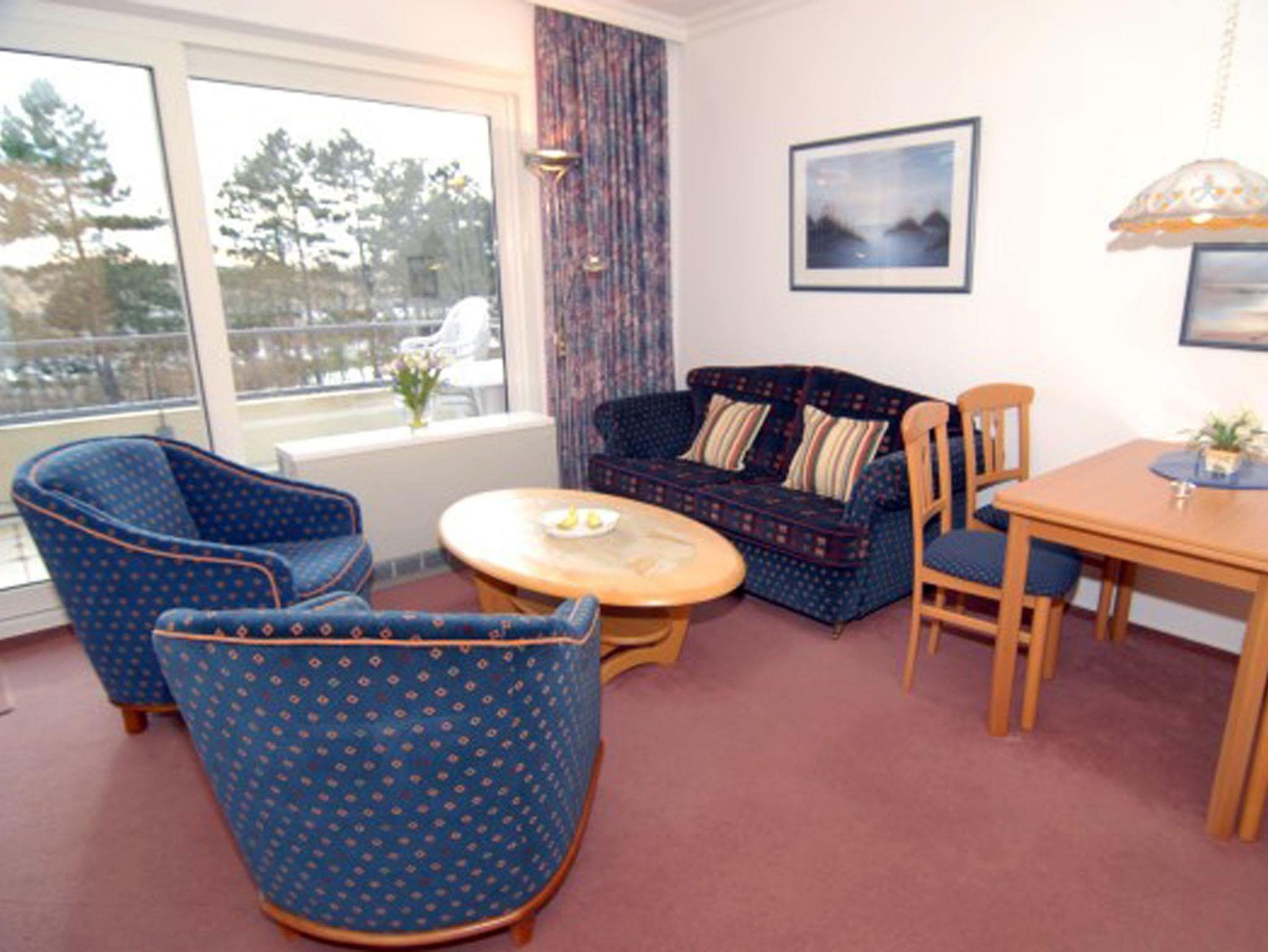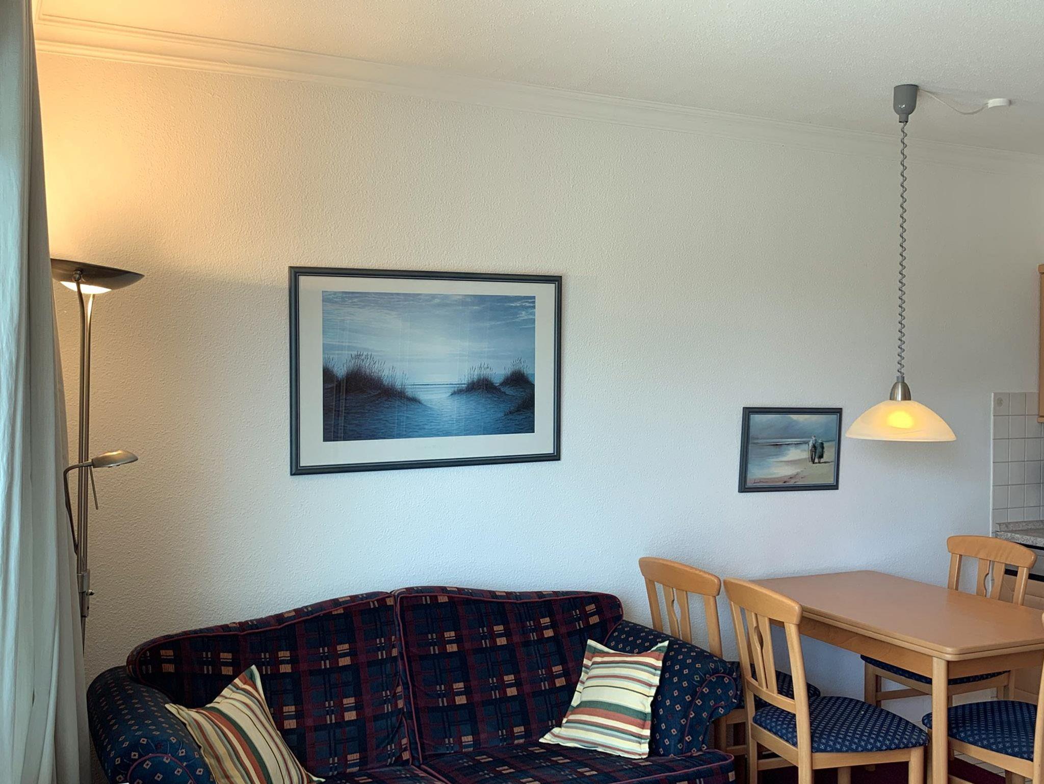 Gemütliche Ferienwohnung Atlantis Nr. 06 in St. Peter-Ording, direkt an der Strandpromenade mit kleinem Meerblick und Balkon.