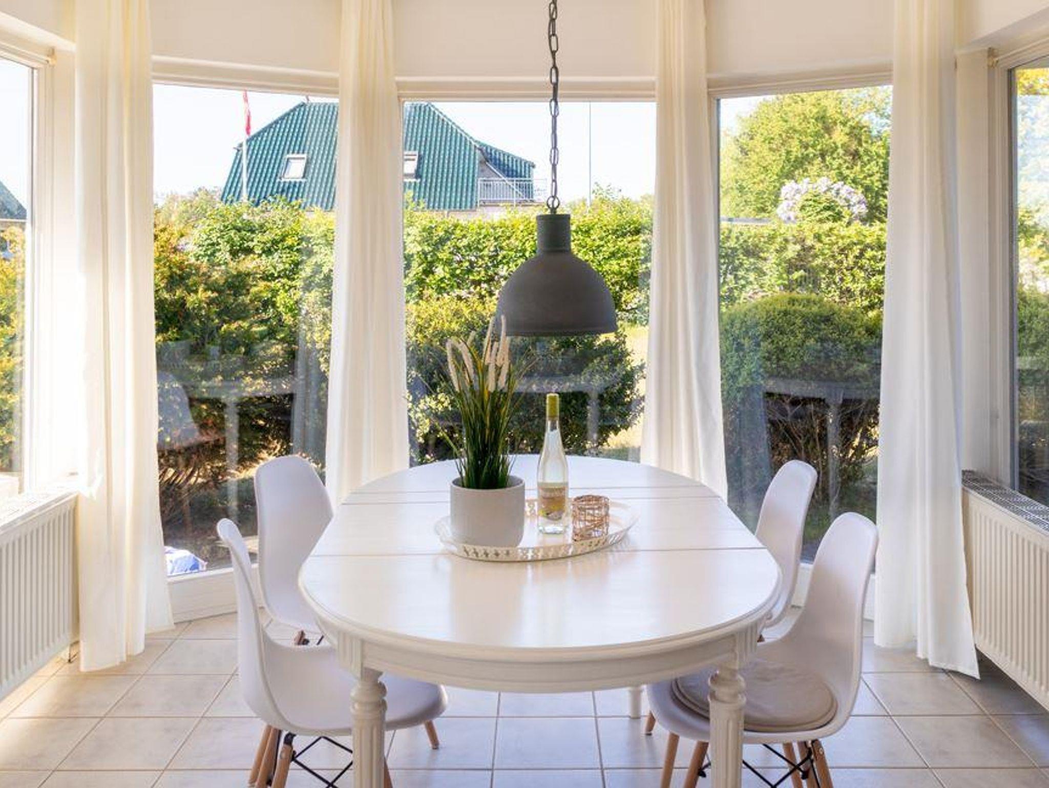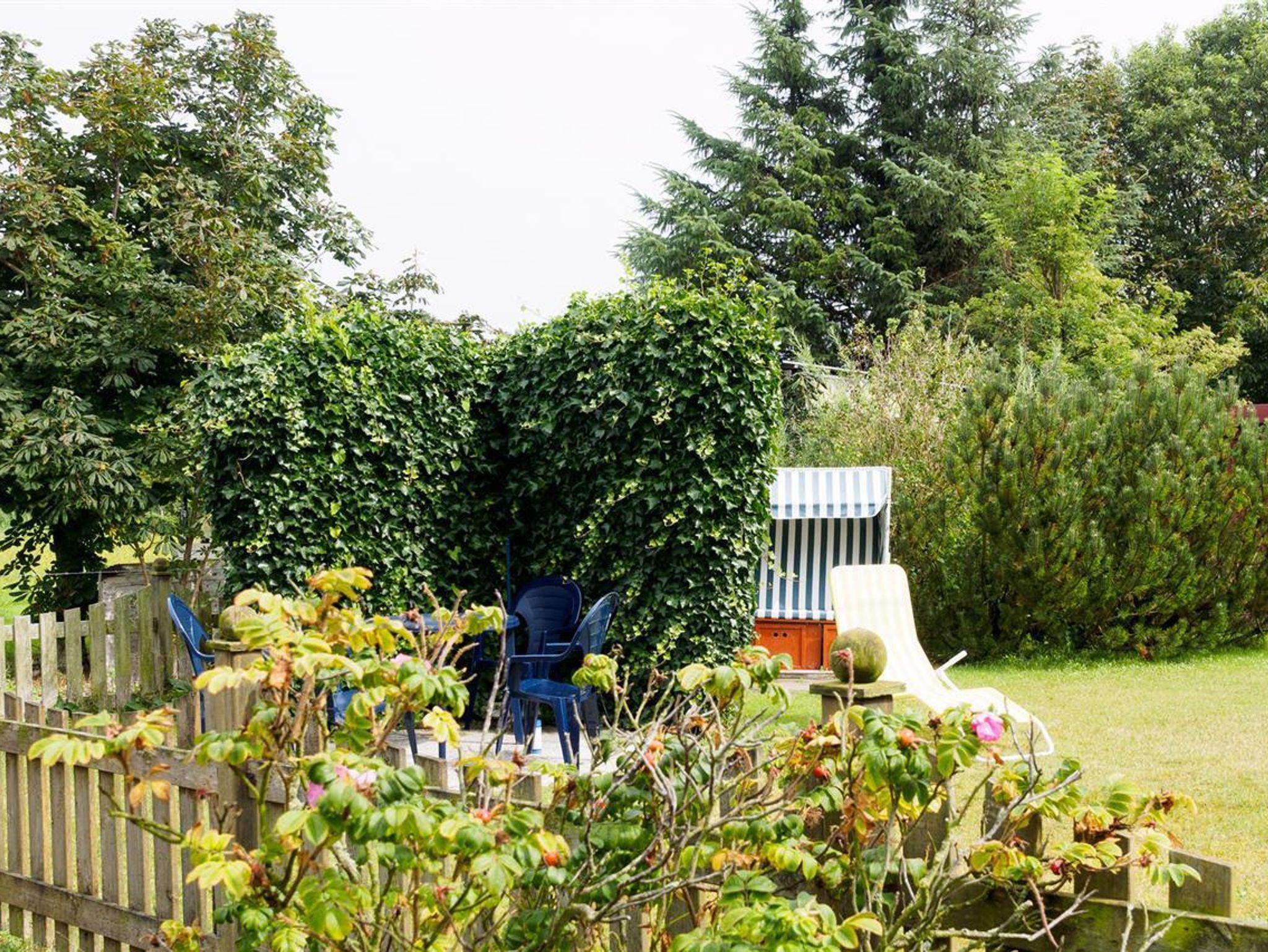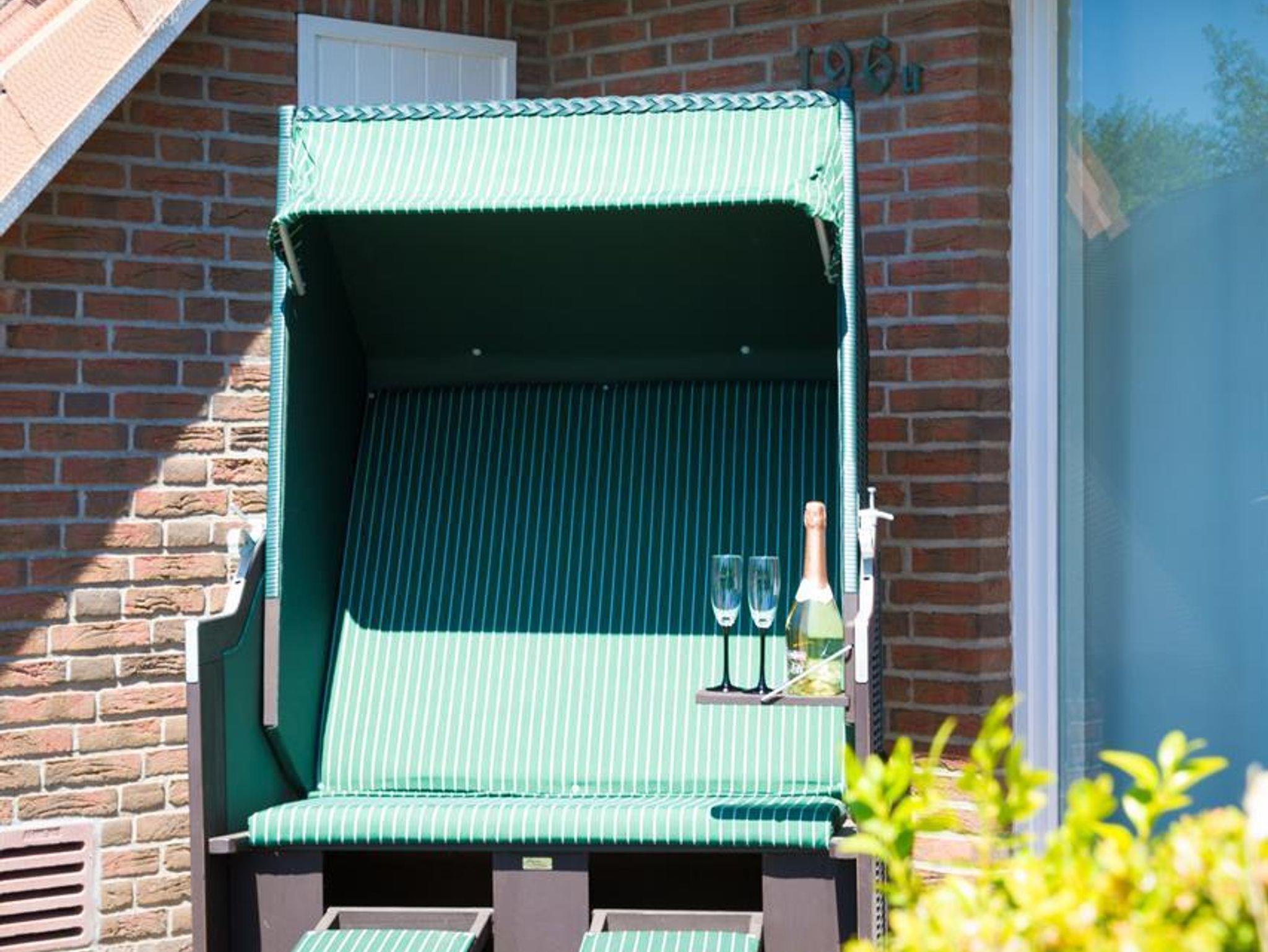 1 Wohnraum mit Sitzecke, Radio, Farb-TV, DVD-Player und vollständig eingerichteter Küchenzeile mit Backofen sowie Geschirrspülmaschine und Eßecke und Ausgang zur Terrasse mit Strandkorb.1 Schlafraum mit Einzelbetten. 1 Schlafraum mit Doppelbett, Dusche/WC und Flur. Die Wohnung ist komplett gefliest und hat Fußbodenheizung. Spiele und Bücher stehen zur Verfügung. Komfortabel und liebevoll eingerichtet. Für Allergiker geeignet.