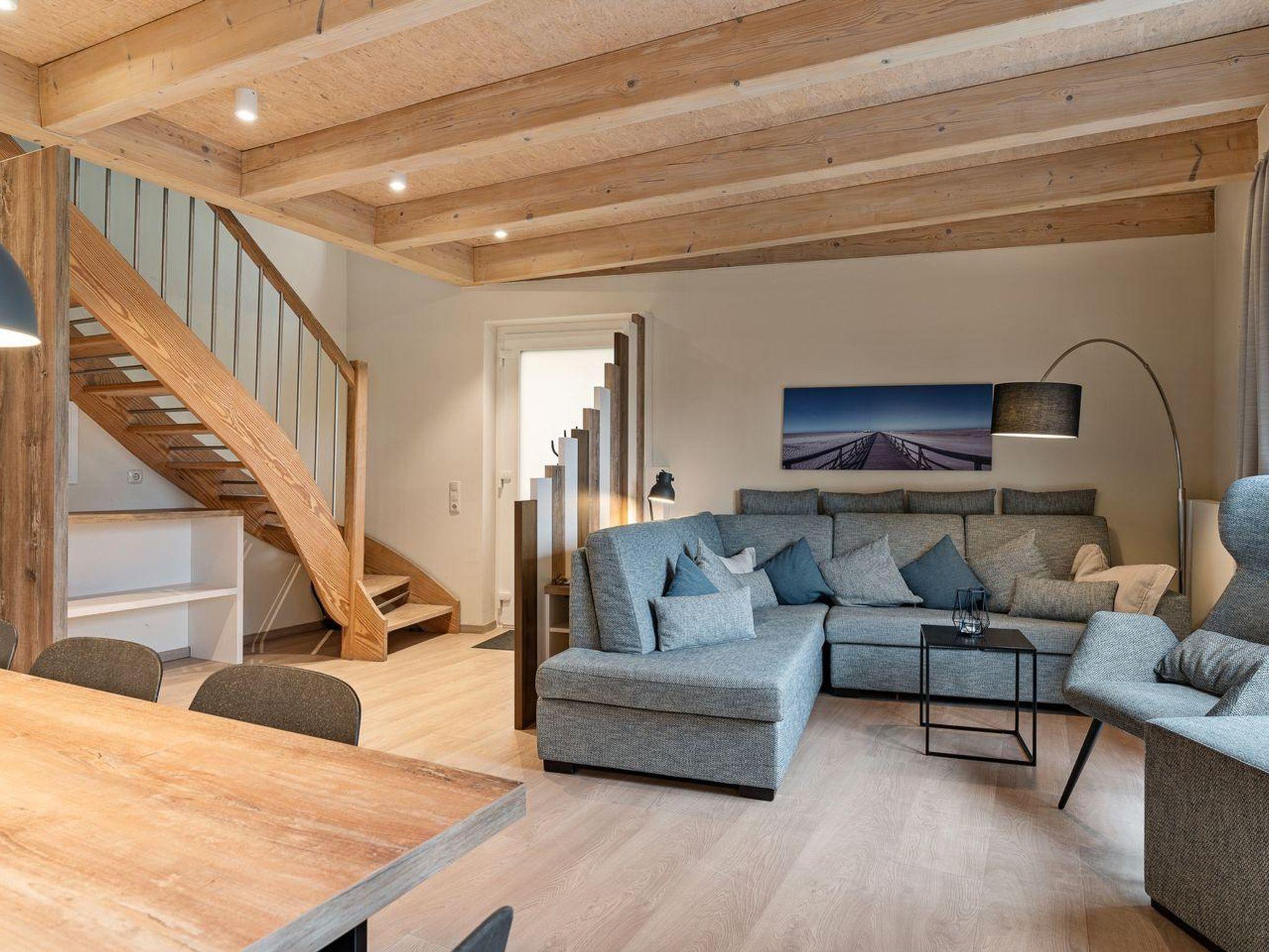 Das geräumige Appartement Ruhe in St. Peter-Ording liegt nur 300 m vom Deich entfernt und bietet Komfort für bis zu 7 Personen.