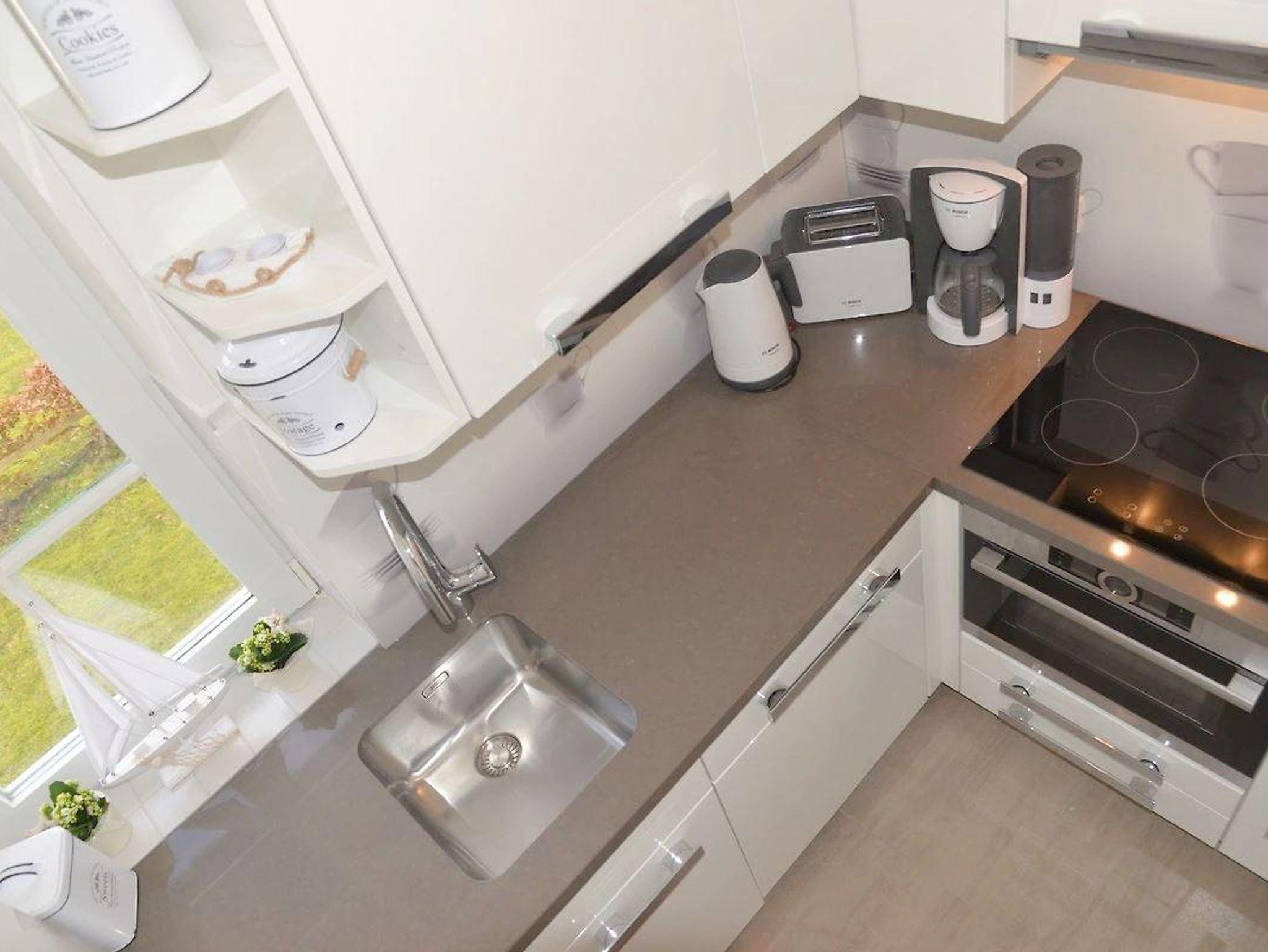 Voll ausgestattete Küche: Kochen Sie Ihre Lieblingsgerichte! Mit Mikrowelle, Toaster, Wasserkocher und einer Nespresso-Kaffeemaschine ist alles vorhanden, um kulinarische Köstlichkeiten zu zaubern.
