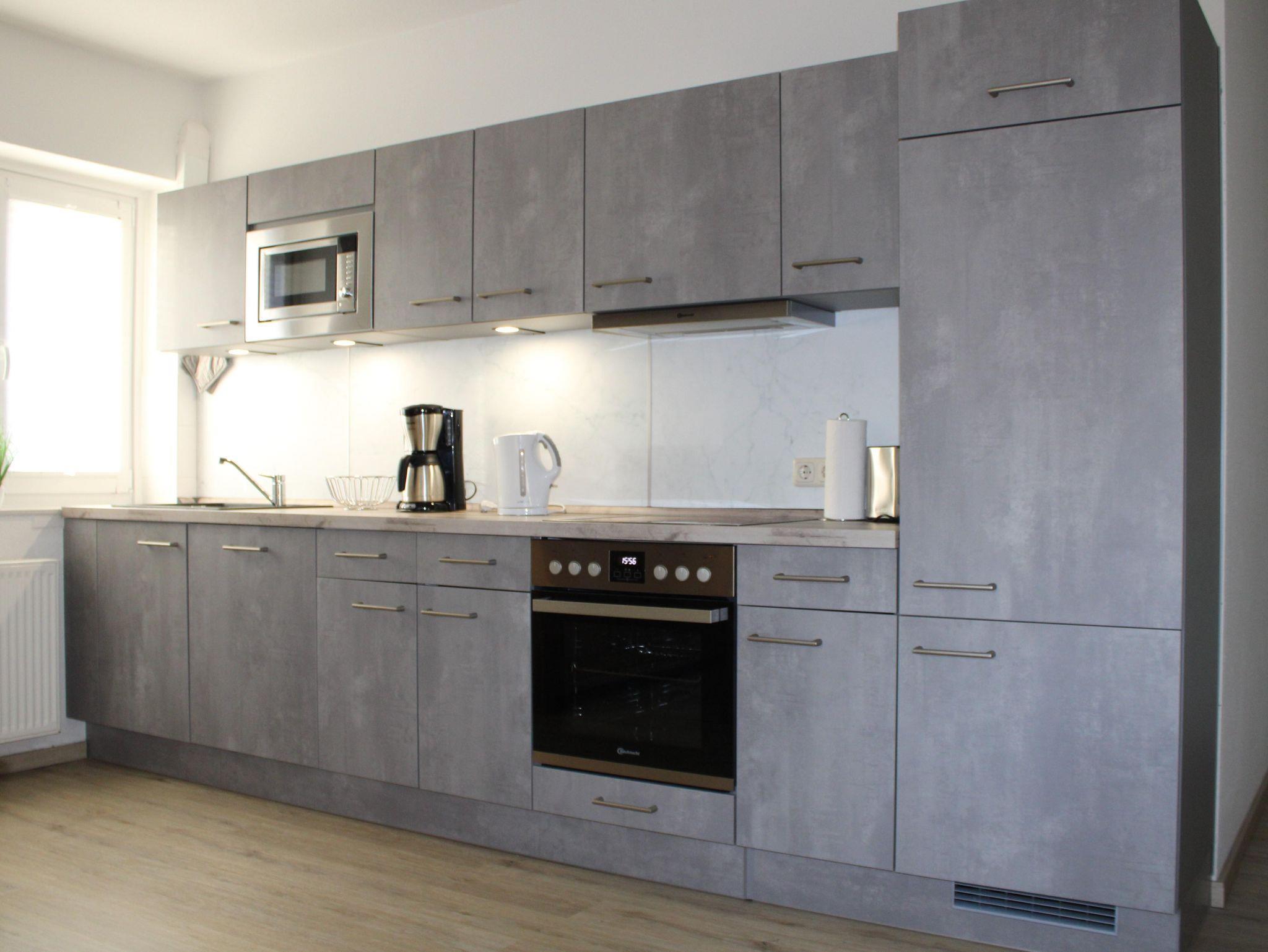 • Offene Küche: Komplett ausgestattet mit Cerankochfeld, Backofen, Geschirrspüler, Mikrowelle, Toaster, Kaffeemaschine und Wasserkocher