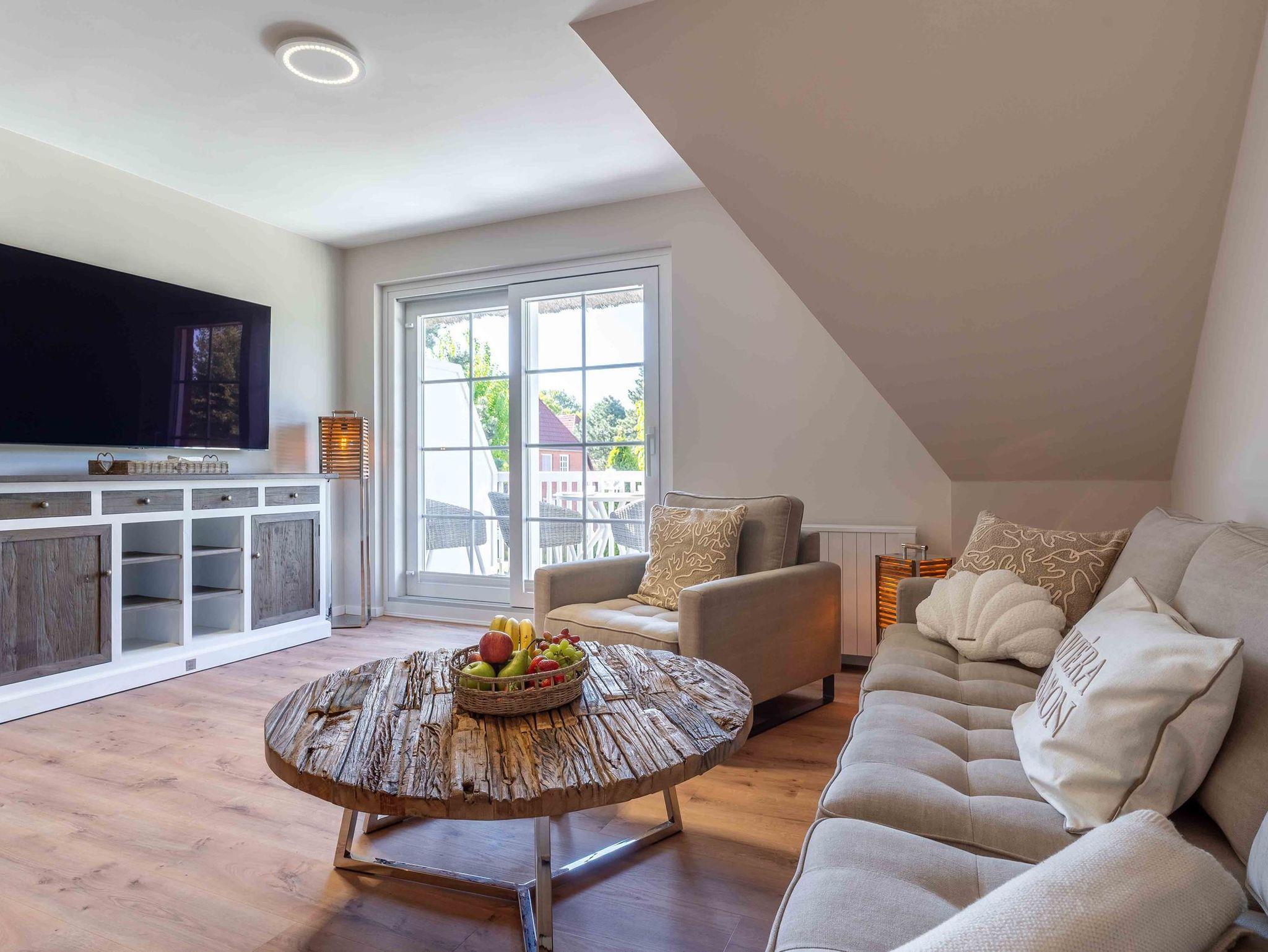 Moderne 3-Zimmer-Ferienwohnung Wattläufer Nr. 09 in St. Peter-Ording mit Balkon, WLAN und eigenem Parkplatz, hundefreundlich.