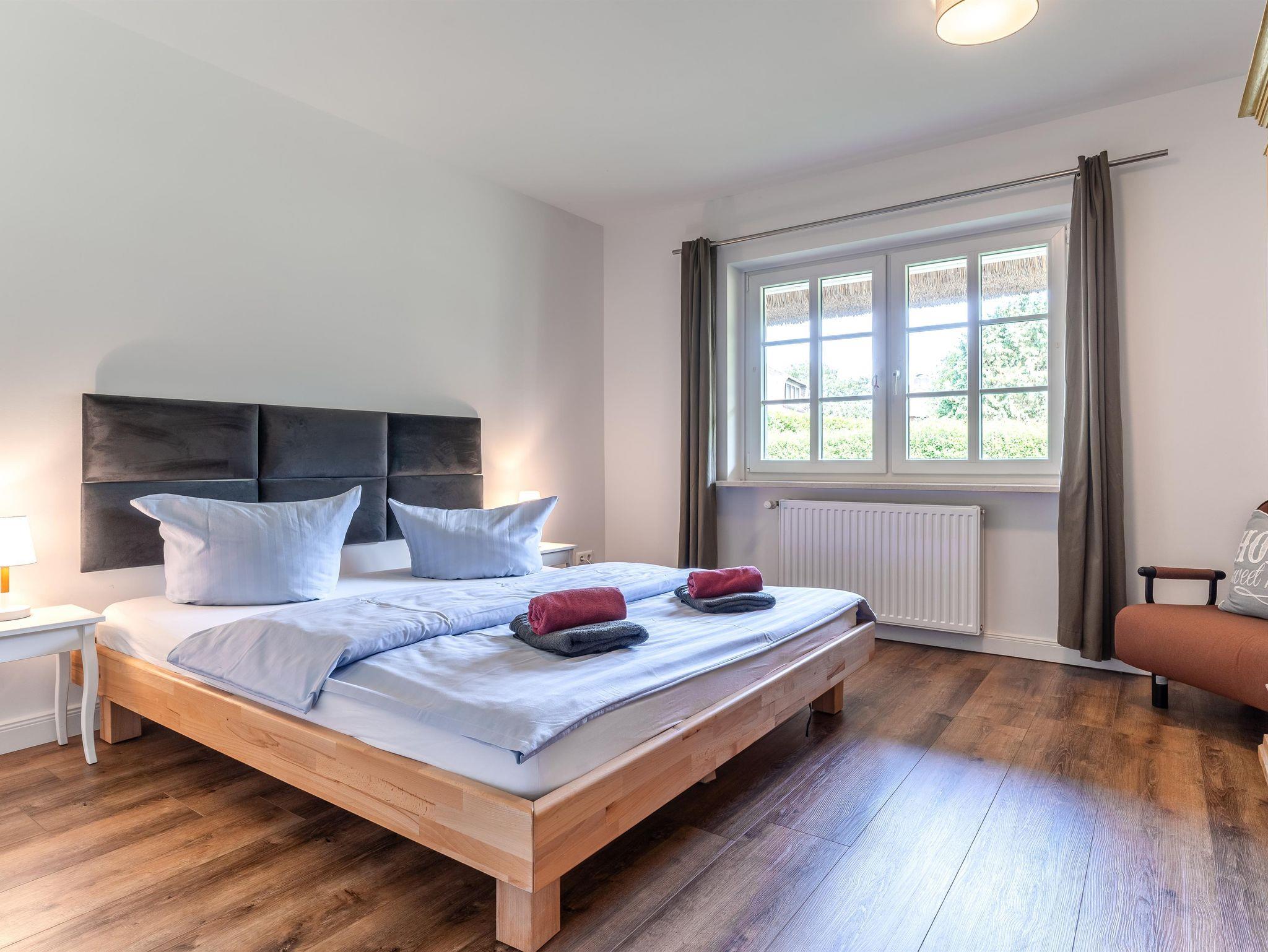 Das Appartment befindet sich in einem Ende 2018 neu gedeckten Reethaus im stillen Dorf in einer Sackgasse gelegen,