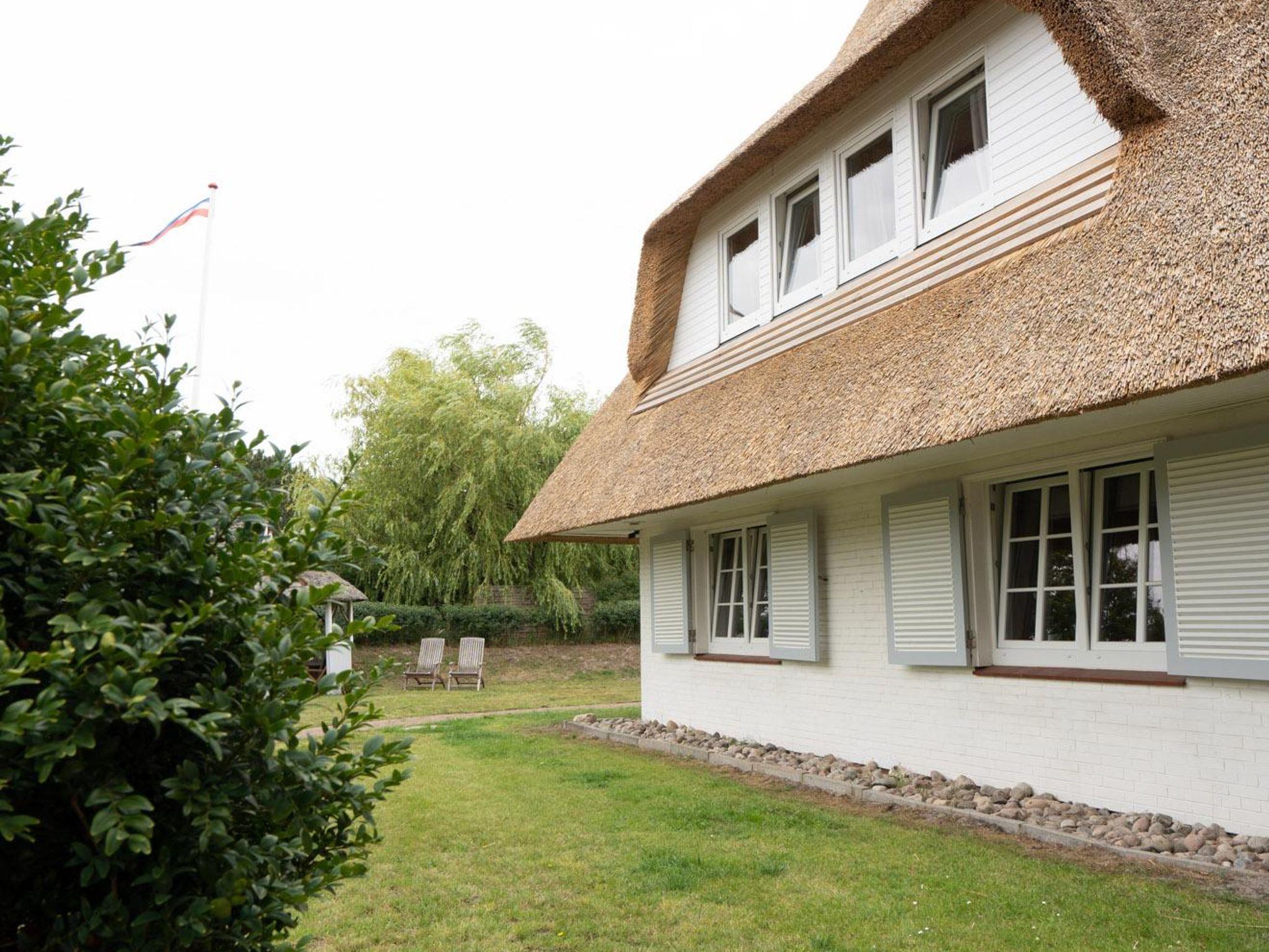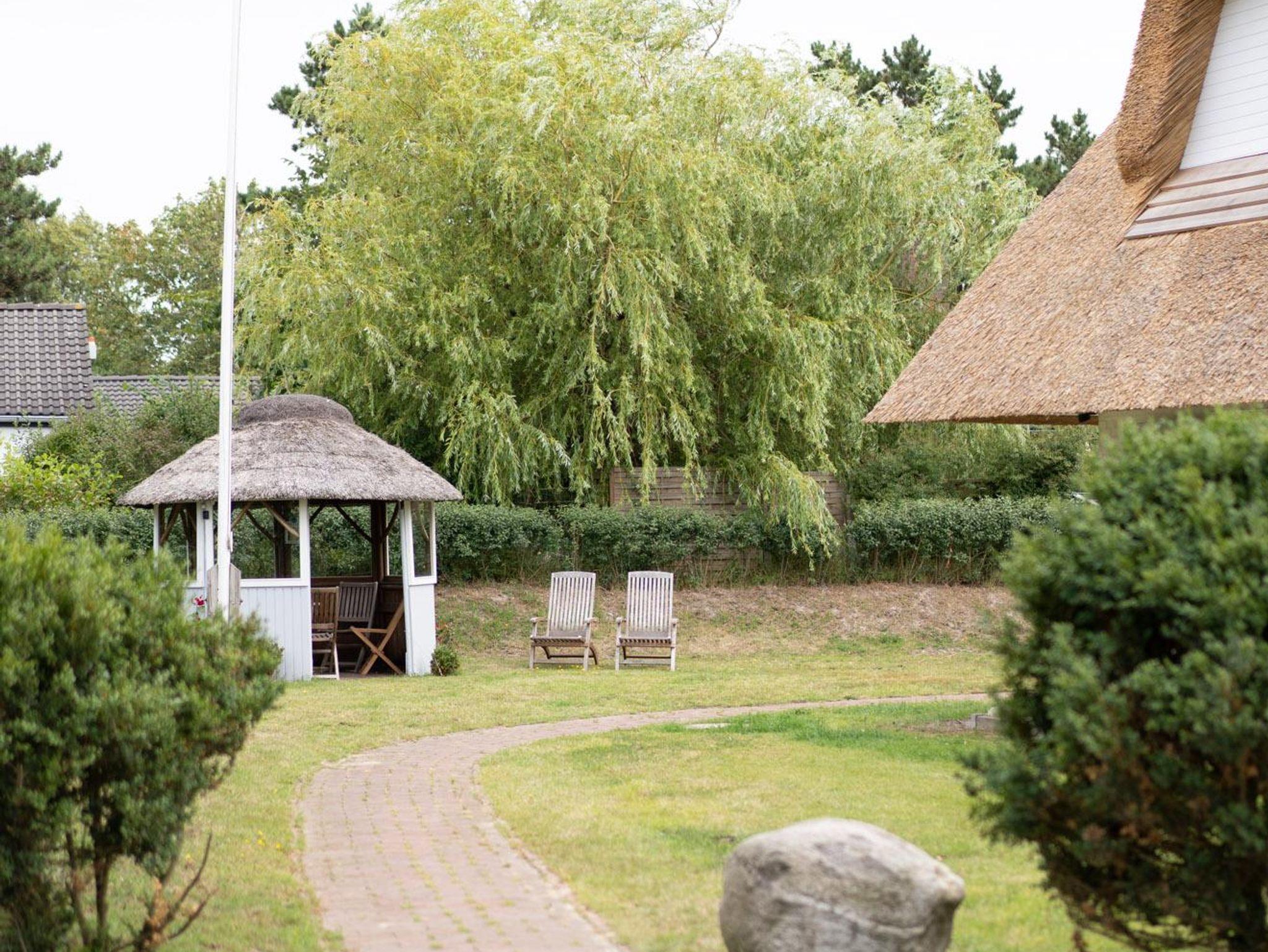 Gemütliche Ferienwohnung im Reetdachhaus nahe St. Peter-Ording, ruhig gelegen mit Terrasse und Blick auf kleine Dünen.