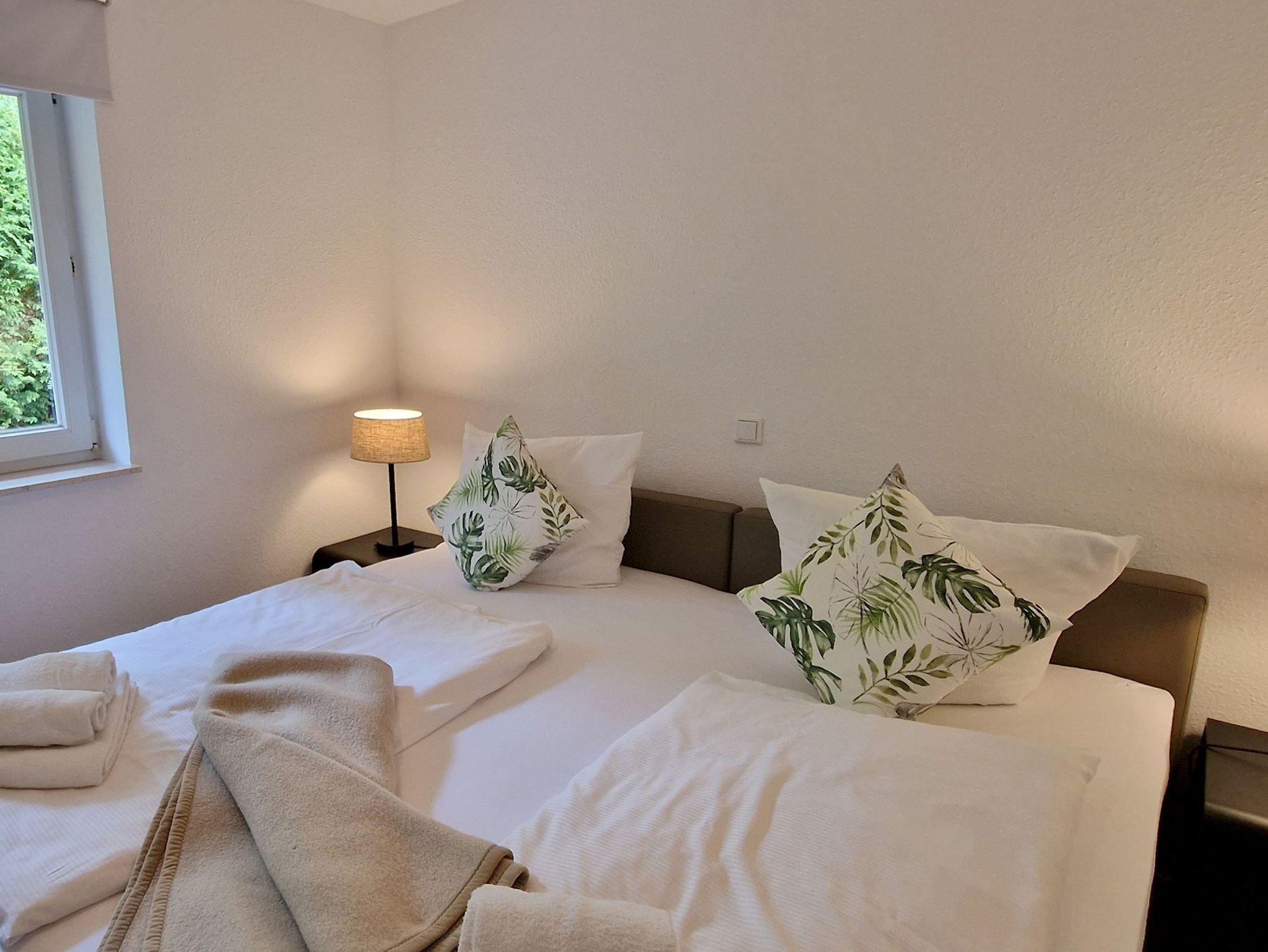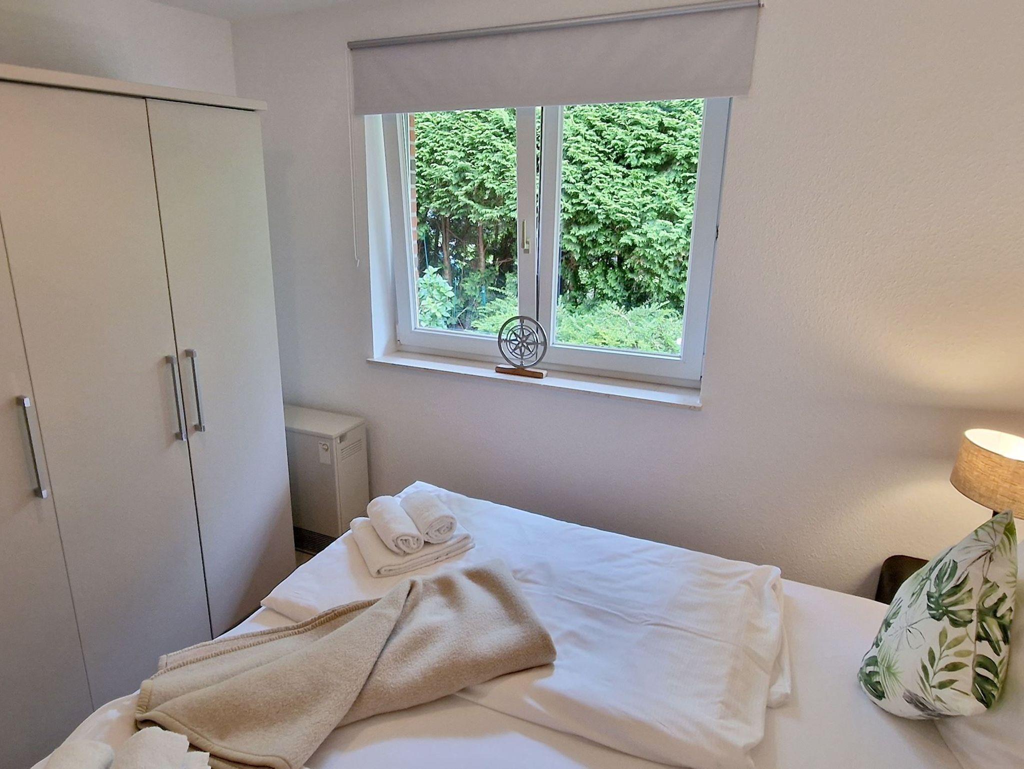 Schlafmöglichkeiten: Die Wohnung bietet ein komfortables Schrankdoppelbett im Wohnzimmer und ein separates Schlafzimmer mit 2 Einzelbetten.