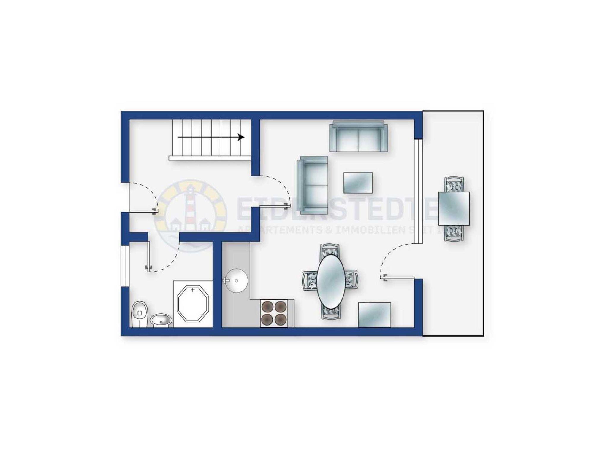 Gut eingerichteter Mittelhausteil im Haus Böhler Eck mit 3 Zimmern und ca. 50 qm auf 2 Ebenen (EG, DG) für bis zu 4 Personen. In ruhiger Lage im Ortsteil Böhl in St. Peter-Ording. Nur wenige Gehminuten vom Seedeich entfernt.