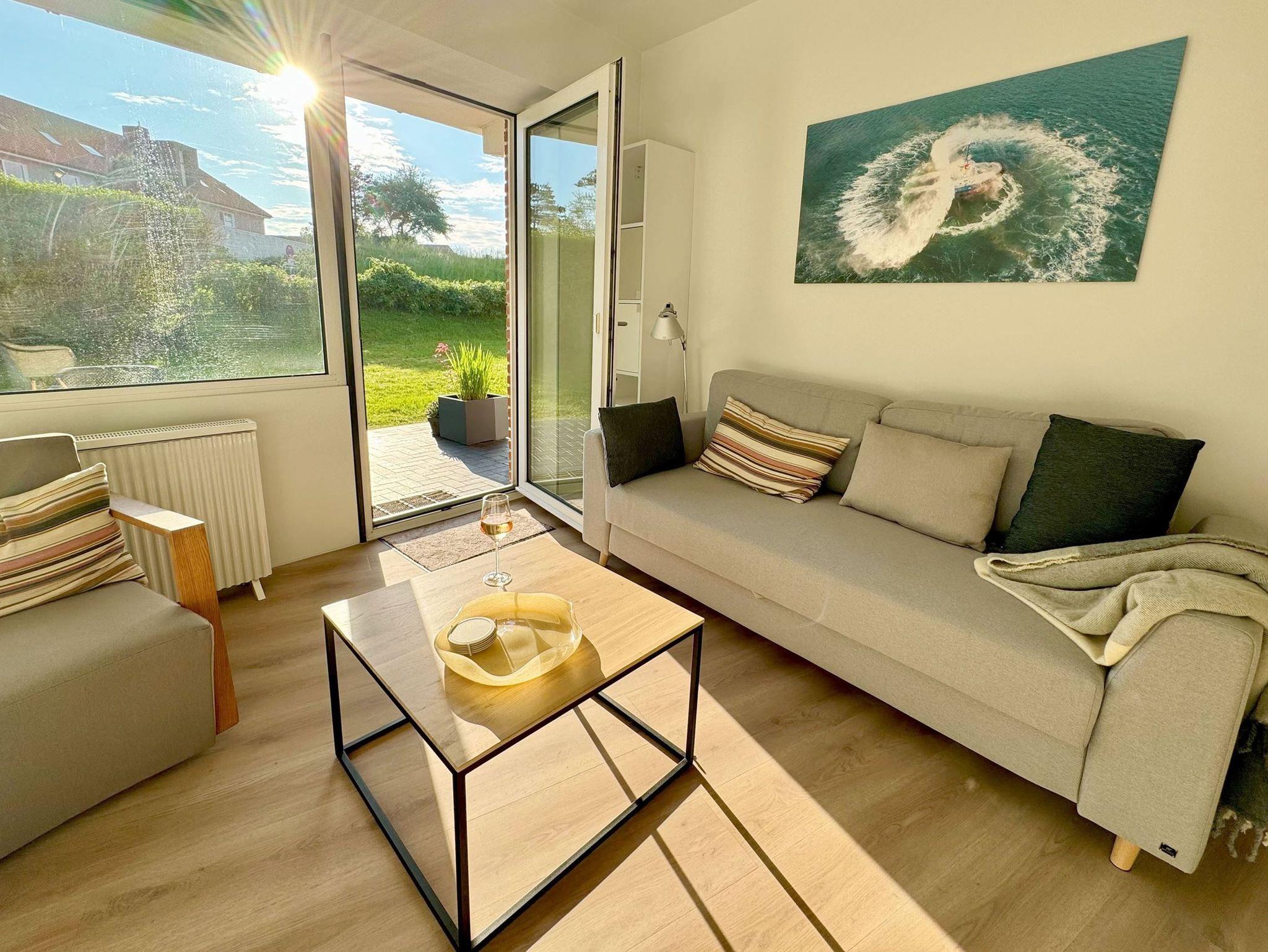 Modern eingerichtete 2-Zimmer-Ferienwohnung am Deich in St. Peter-Ording, nahe Strand und Dünenwald.
