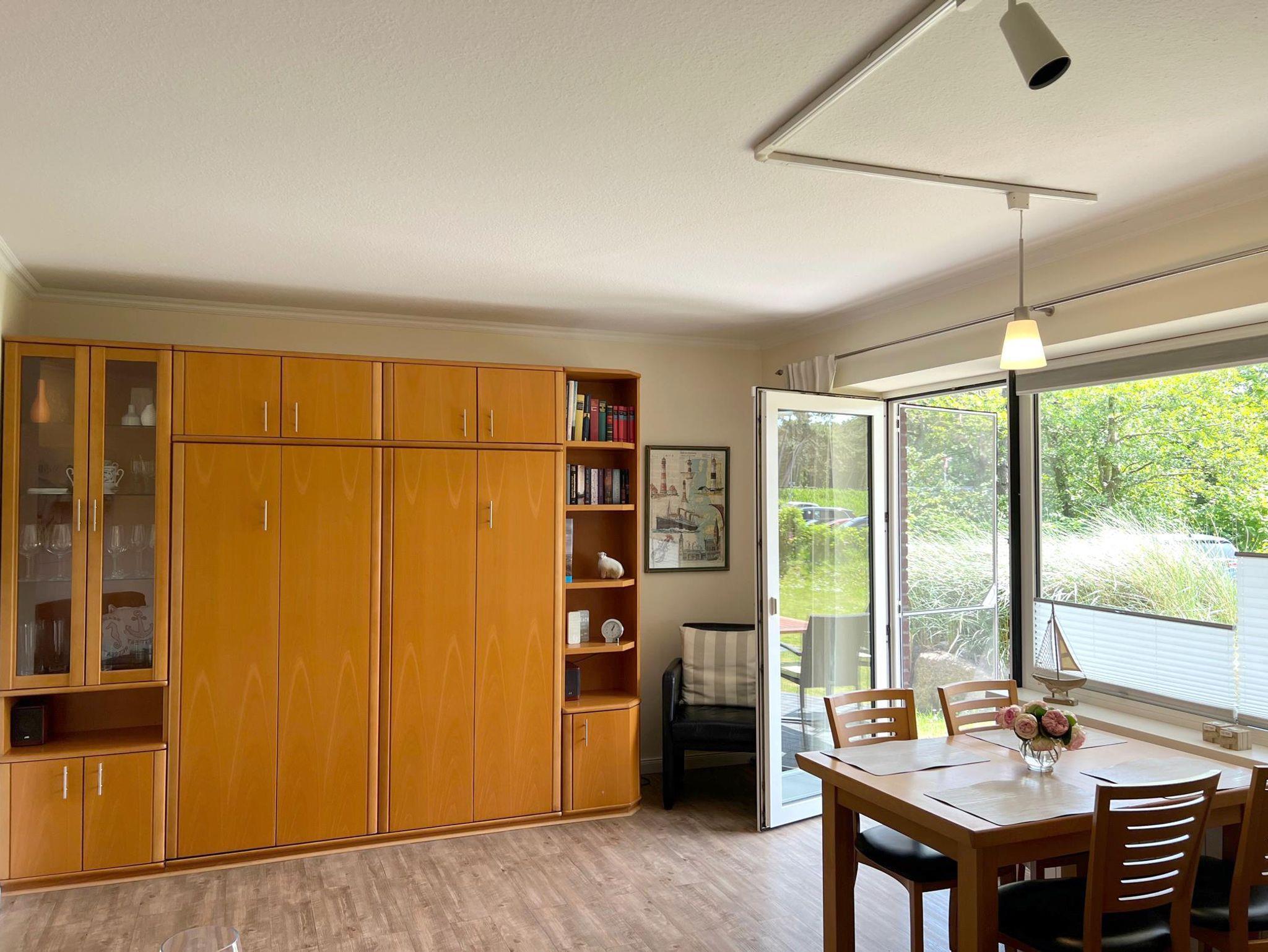 Liebevoll eingerichtete und komplett renovierte 2-Raum-Ferienwohnung für bis zu 4 Personen. Sie ist ausgestattet mit hochwertigen Materialien, wie z.B. Holzdesignfußböden, Ledermöbeln, einer separierten Einbauküche und einem modernen Bad mit bodengleicher Dusche. Erholsamen Schlaf finden Sie in einem der 2 Einzelbetten oder in einem Schrankdoppelbett. Auf der halbüberdachten Terrasse in Südlage können Sie bereits morgens in der Sonne frühstücken oder die Seele baumeln lassen.