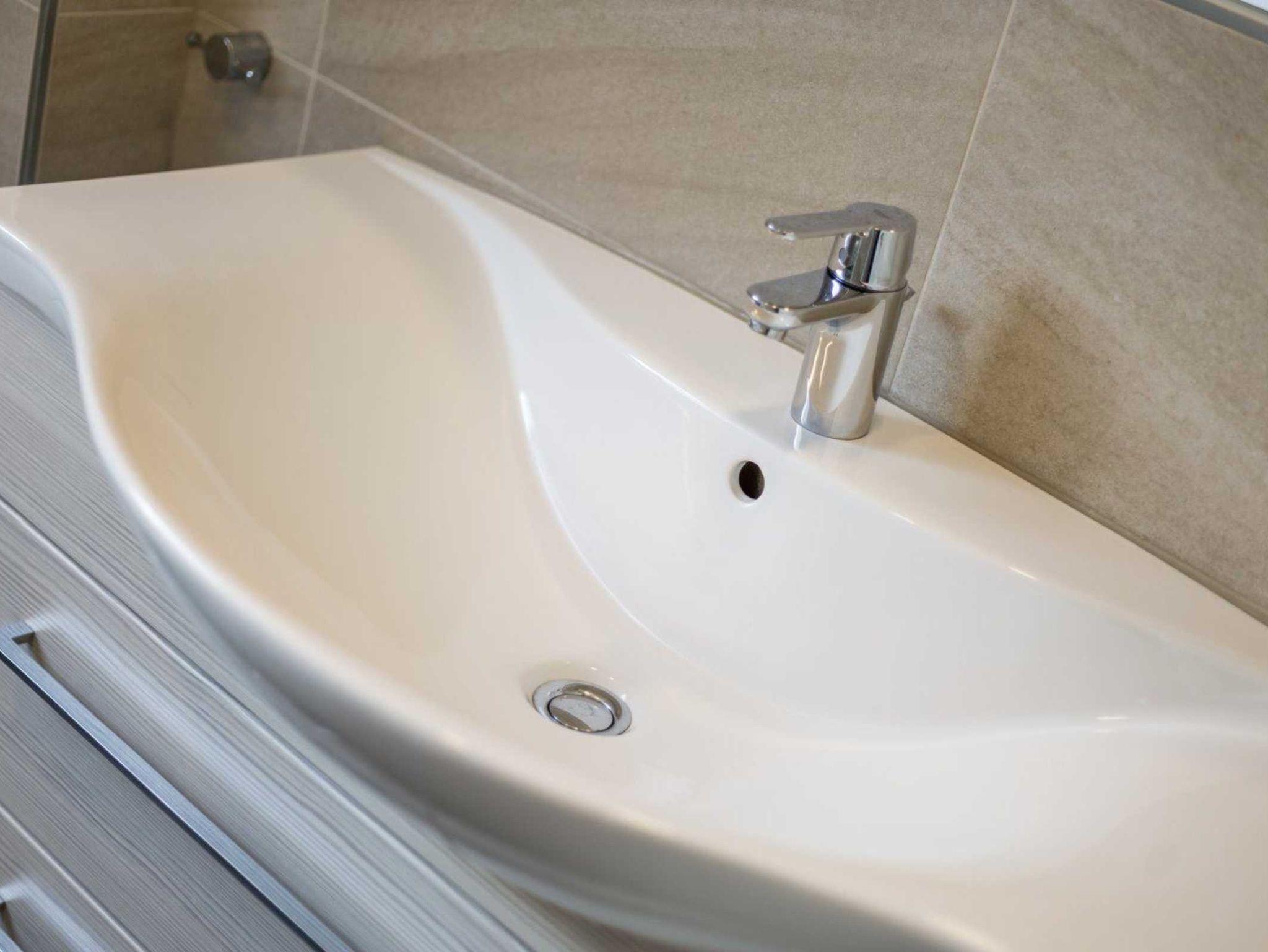 Badezimmer (Duschbad) mit Dusche, WC, Tageslicht und Föhn.