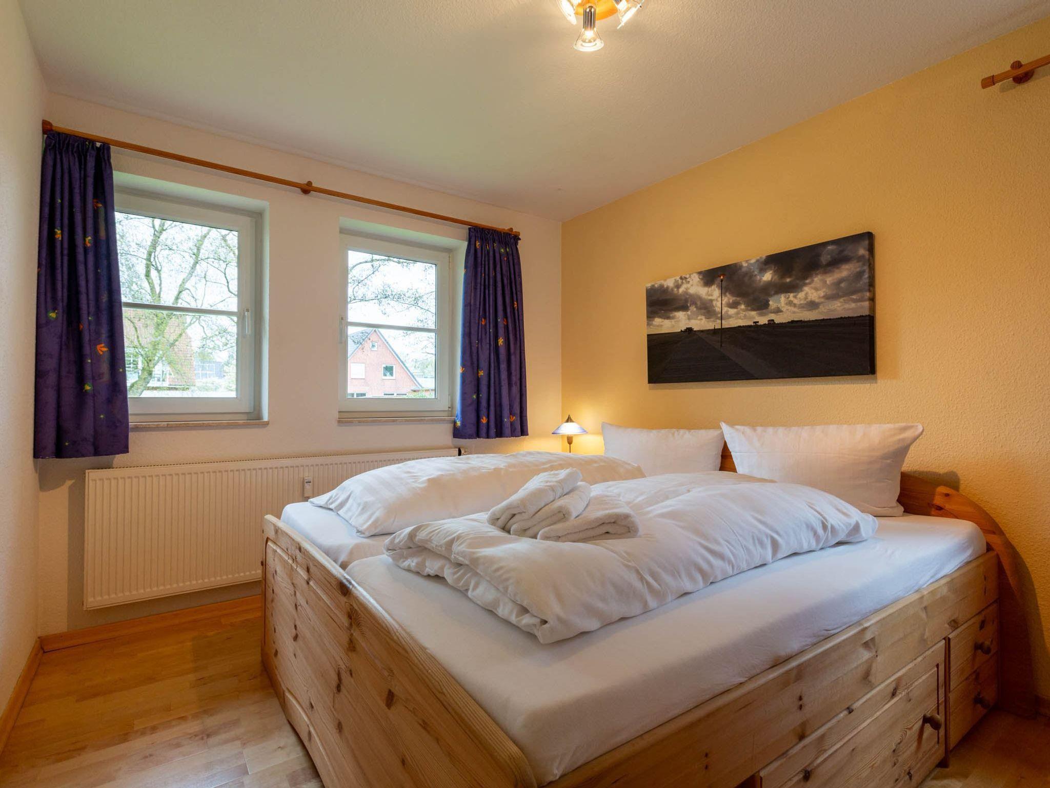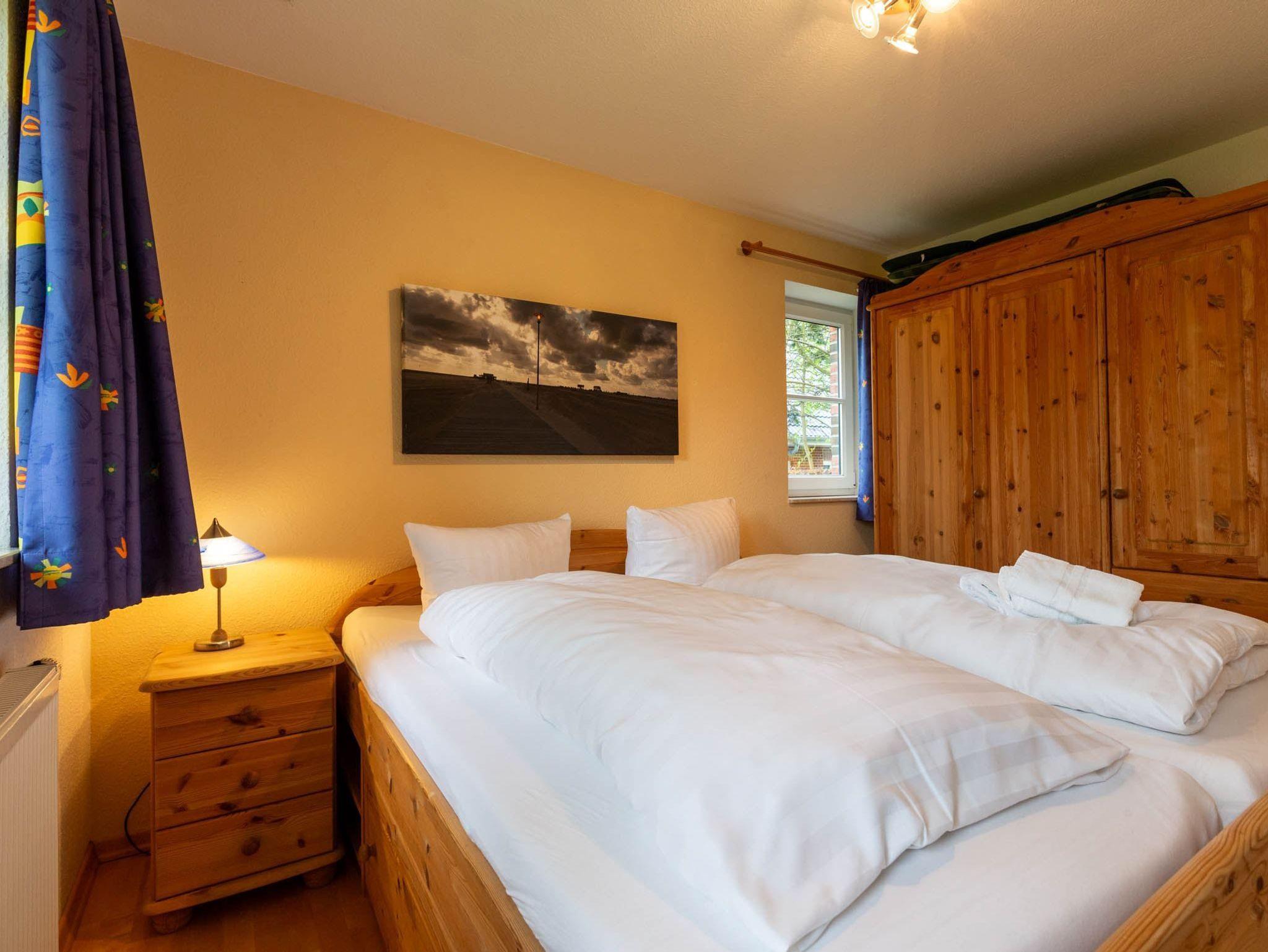 Schlafzimmer mit Doppelbett (2x 90x200cm) und Kleiderschrank.