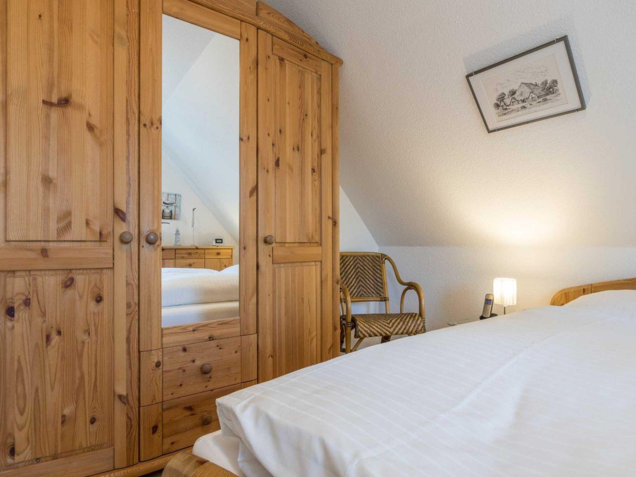 1. Schlafzimmer mit Doppelbett (2x 90x200 cm), 2 Stühlen und Kleiderschrank.