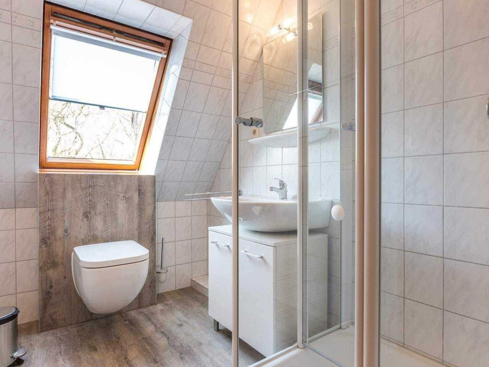 Badezimmer (Duschbad) mit Dusche, WC und Tageslicht.