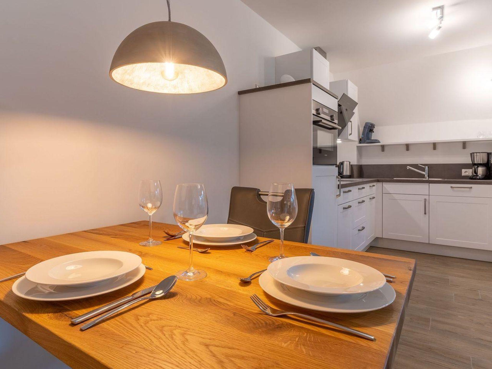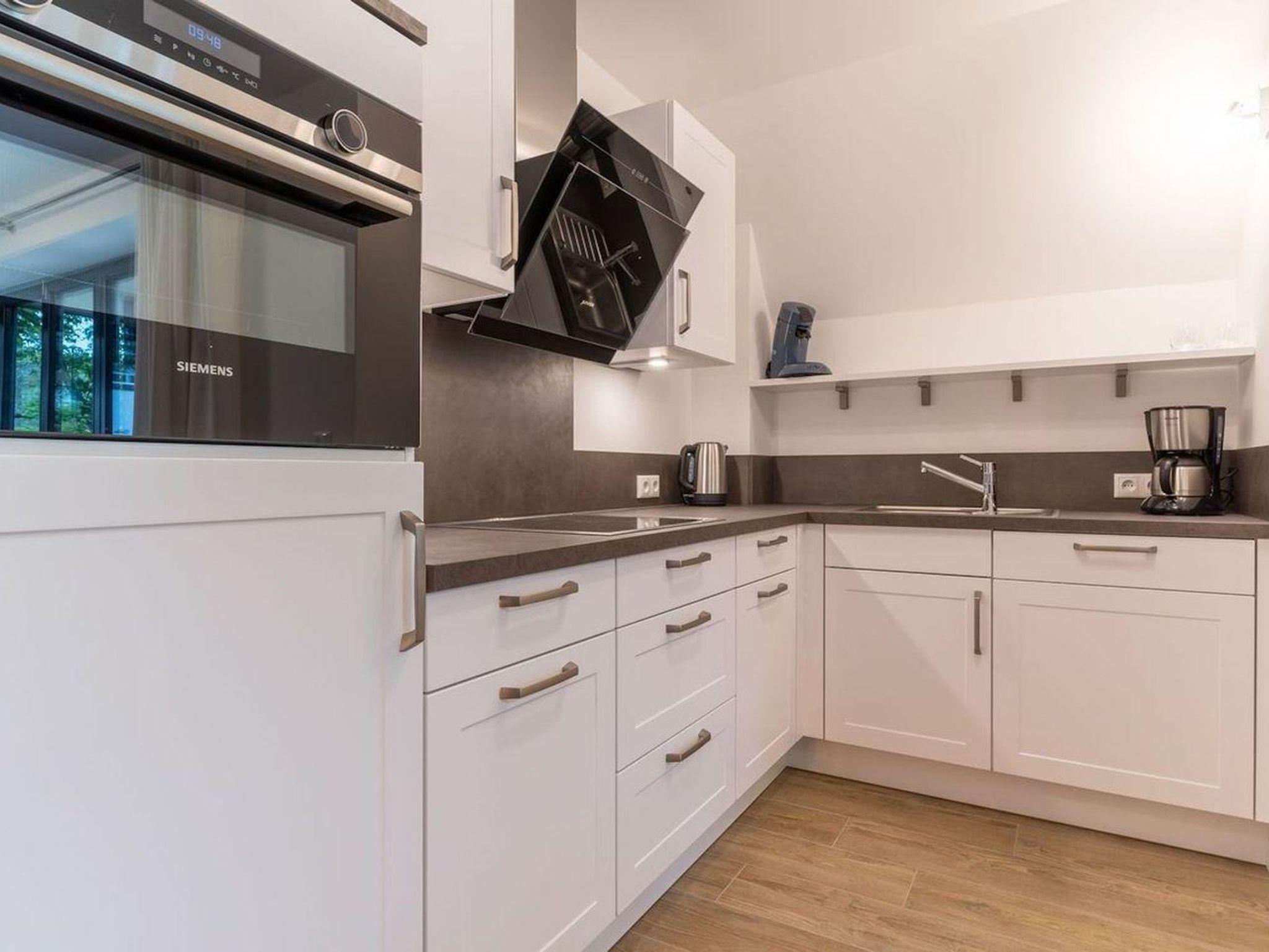 Die Wohnung befindet sich im Erdgeschoss mit einem lichtdurchfluteten Wohnraum mit TV und einer modernen Wohnküche. Die Wohnräume sind mit neuen und modernen Möbeln ausgestattet.