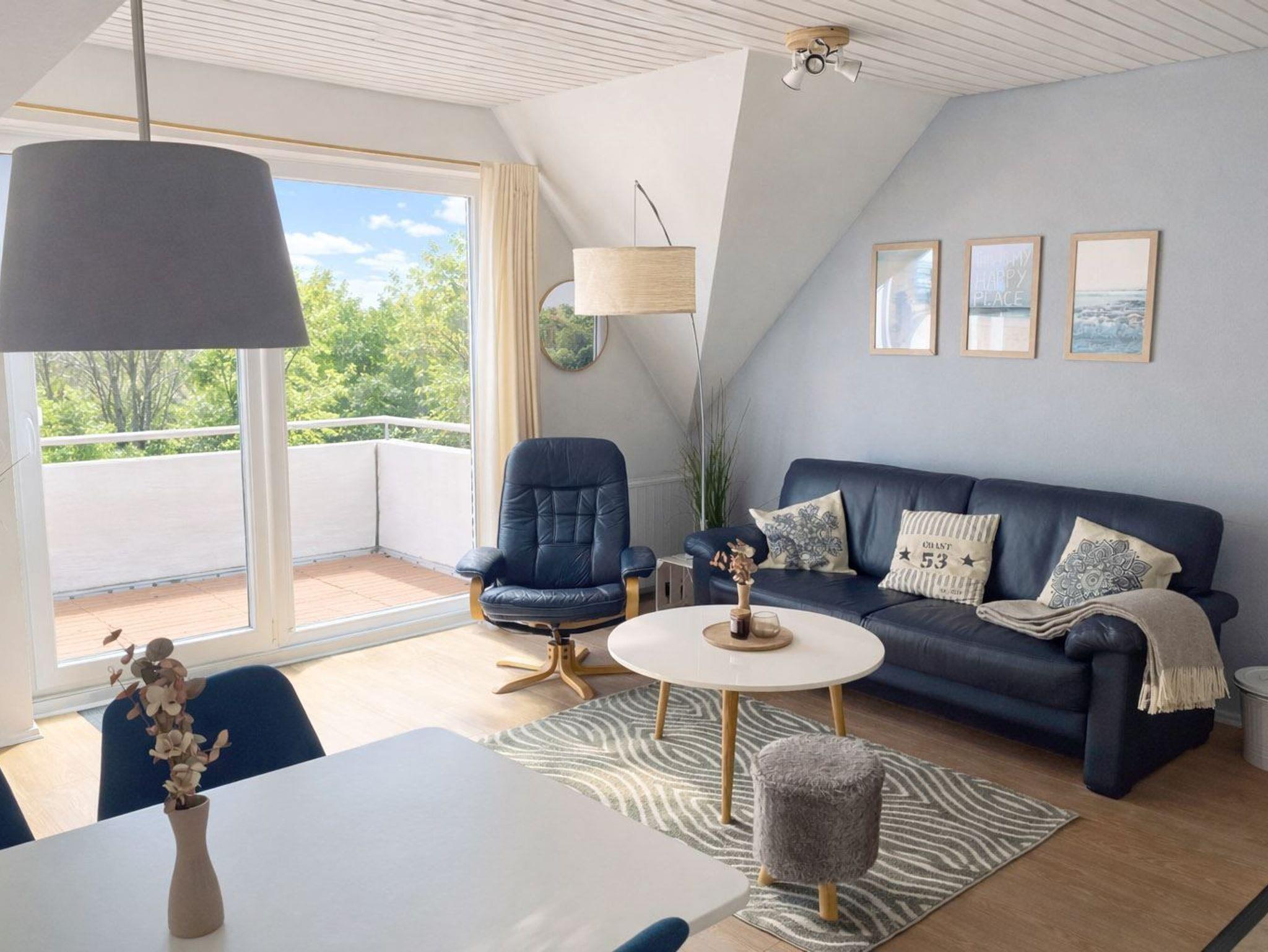 Moderne 3-Zimmer-Ferienwohnung über zwei Ebenen mit Balkon und WLAN in St. Peter-Bad, ideal für Familien.