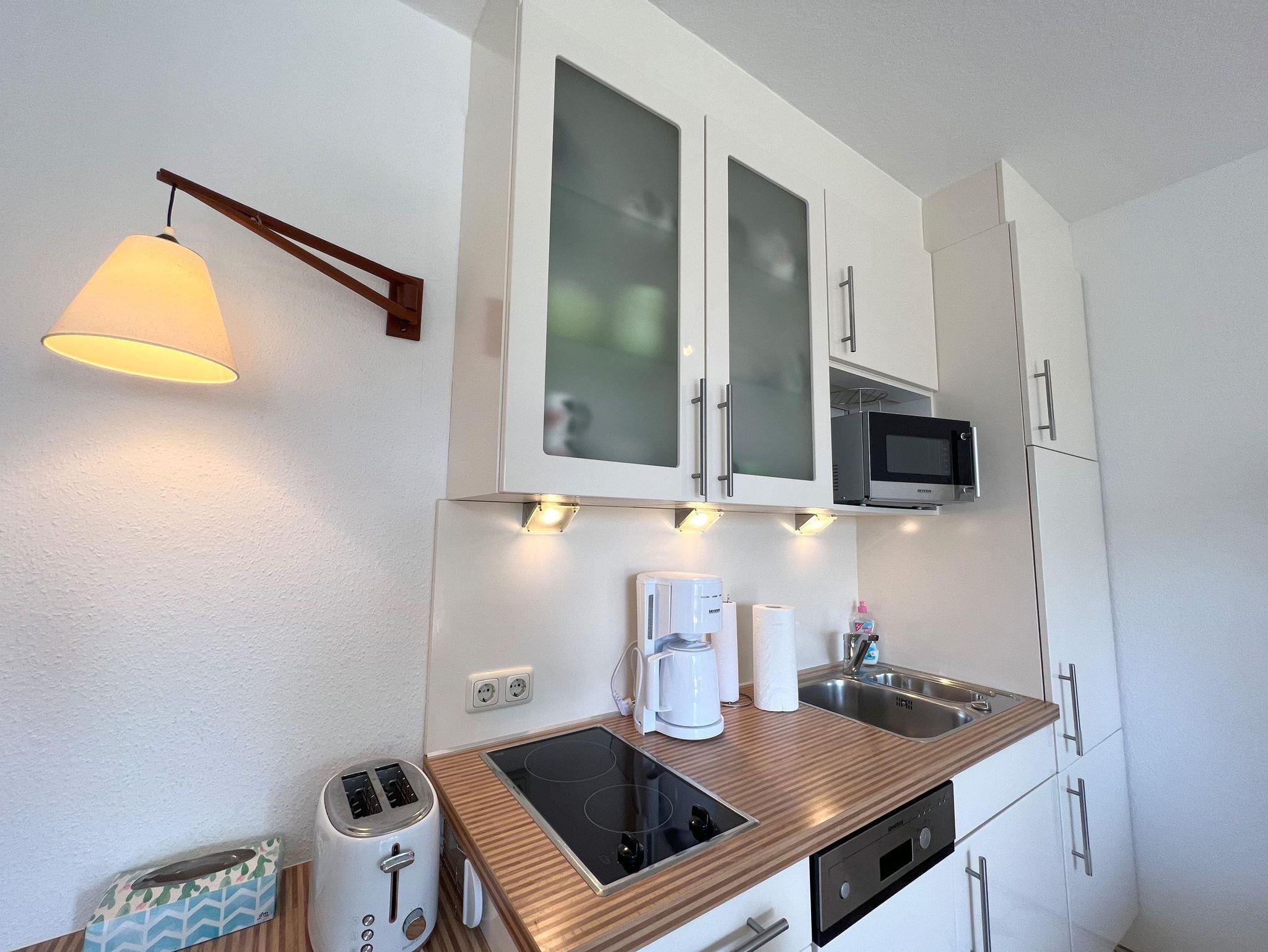 Küchenzauber: Kochen Sie Ihre Lieblingsgerichte in der voll ausgestatteten modernen Küchenzeile! Ausgestattet mit einem Induktionskochfeld, einer Spülmaschine, einer Kühl-Gefrier-Kombination, einer Mikrowelle und einem Backofen steht Ihrem kulinarischen Abenteuer nichts im Weg.