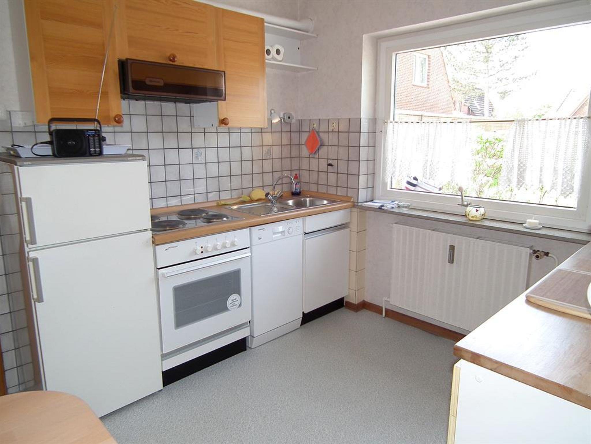 Eine komplett ausgestattete separate Küche mit Geschirrspülmaschine und mit Essplatz für 2 Personen lädt zum Kochen ein. Ein großzügiger Abstellraum in der Wohnung, PKW-Stellplatz und überdachte Fahrradabstellplätze ergänzen das Angebot. Ein Freisitz mit Grillkamin auf dem großen Rasen mit Blick auf den angrenzenden Wald ermöglicht schöne Stunden im Freien. Auf Anfrage ist ein Zustellbett für ein Kleinkind vorhanden.
