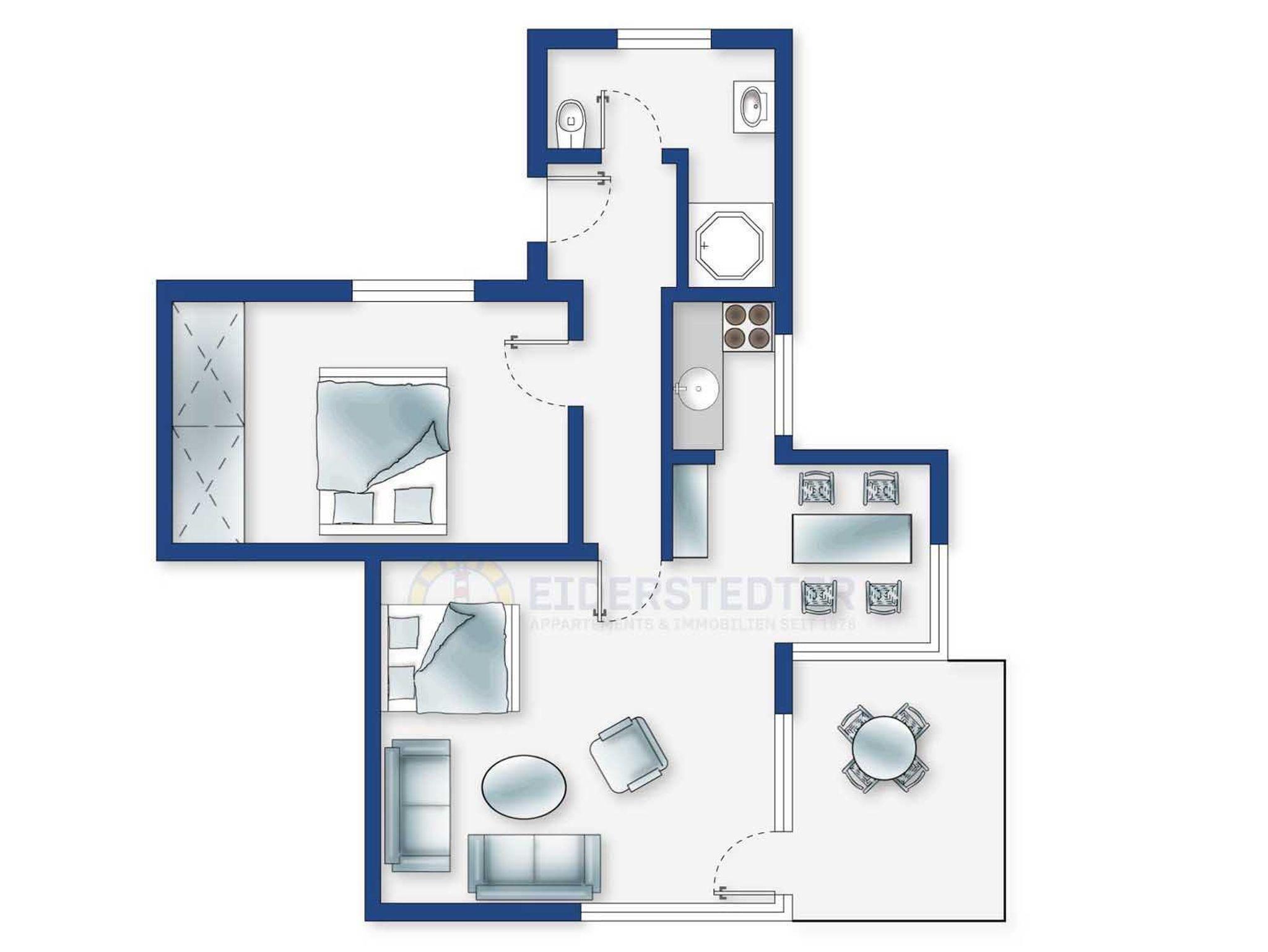 Charmante 2-Zimmer-Ferienwohnung mit Meerblick, Balkon und zentraler Lage in St. Peter-Ording.
