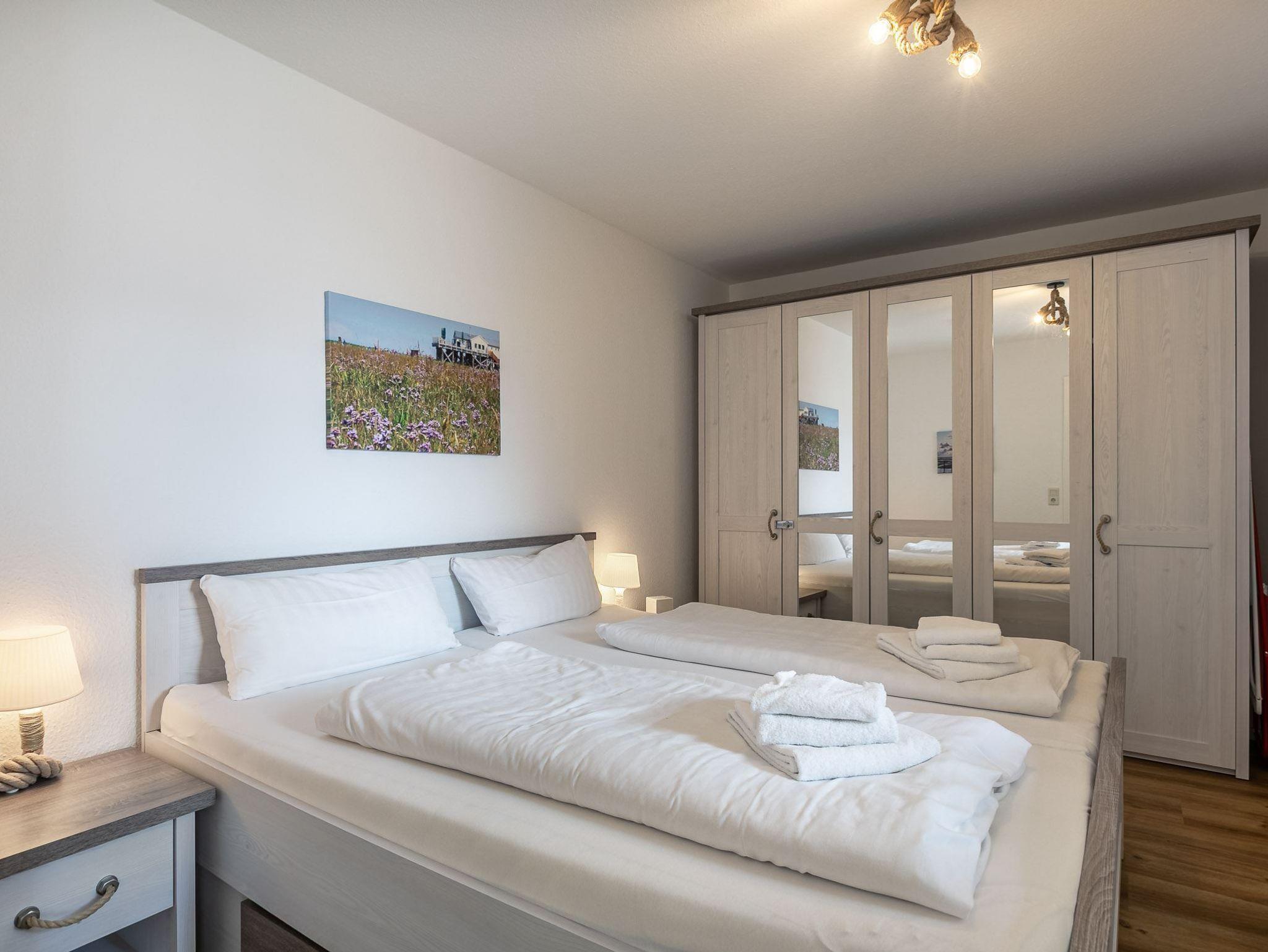 Charmante, sonnige 2-Zimmer-Ferienwohnung mit ca. 50 m² auf 1 Ebene (3. OG) für bis 4 Personen (Wohlfühlbelegung: max. 3 Erwachsene). Strand- und zentrumsnahe Lage im Ortsteil Bad in St. Peter-Ording. Zur Promenade, dem Strand, der Dünentherme und allen Restaurants und Geschäften des Kurzentrums sind es nur wenige Gehminuten. Balkon nach Südwesten mit herrlichen Ausblick über die Dächer von St. Peter-Ording bis zur Seebrücke am Strand und dem Meer.