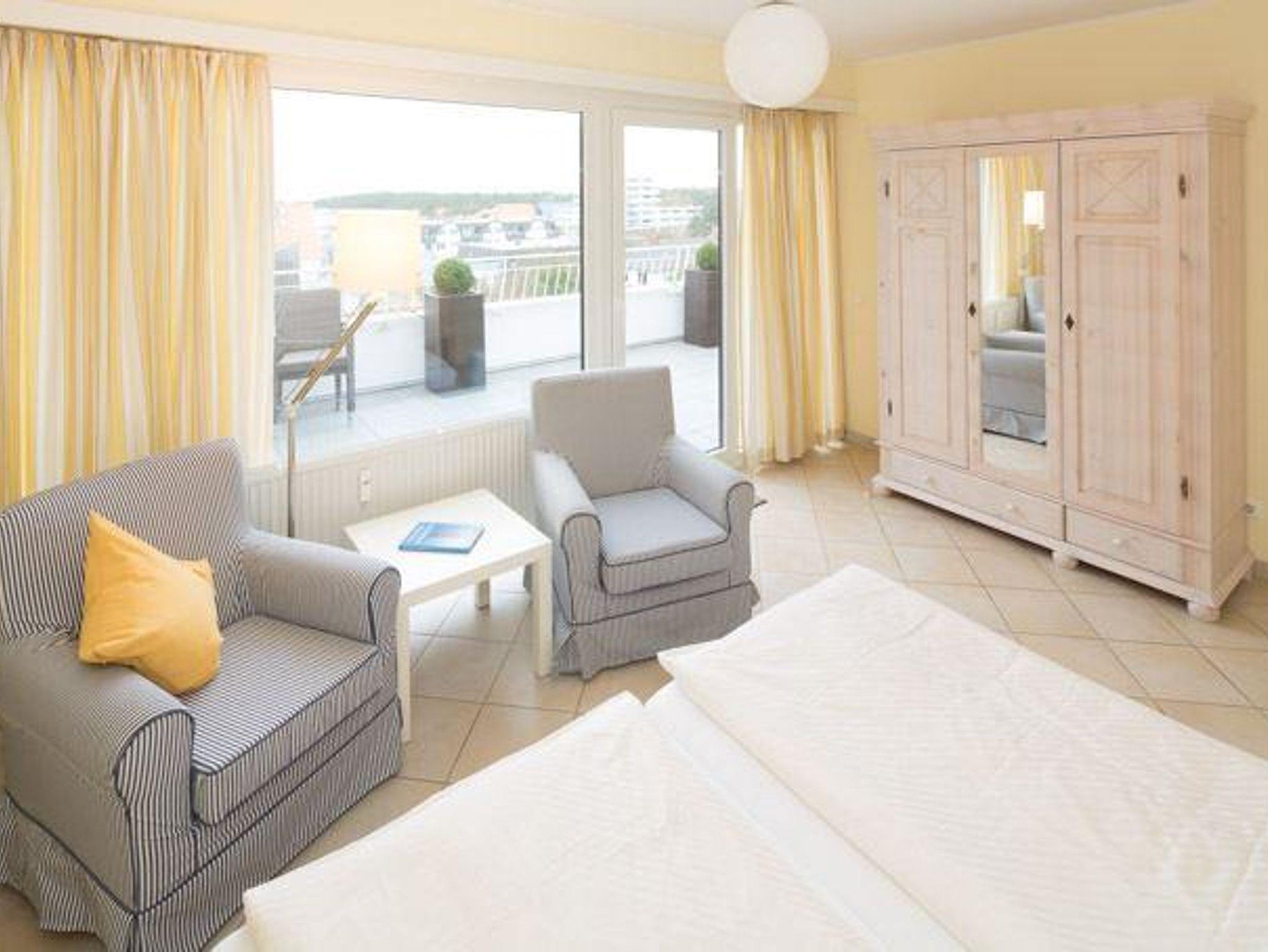 App.Nr. 71, Typ 8, IV.OG., Nord-Westlage 1 Schlafraum mit Doppelbett, 1 Schlafraum mit Doppelbett und Einzelbett, Wohnraum mit Sitz- und Eßecke, offene Küche mit Geschirrspüler, Backofen und Mikrowelle, Fußboden gefliest, Kabel-TV, Durchwahltelefon, Dusche/WC, Balkon, Garagenstellplatz-Nr. 71, Aufzug und Fahrradkeller. Rezeption, Brötchenservice, Schwimmbad, Sauna kostenpflichtig, kostenfreier Internetzugang (LAN1-Germania). Bettwäsche wird einmalig bei Einzug gestellt. Handtücher können gegen Gebühr entliehen werden. TIERE SIND NICHT ERWÜNSCHT-NICHTRAUCHERWOHNUNG