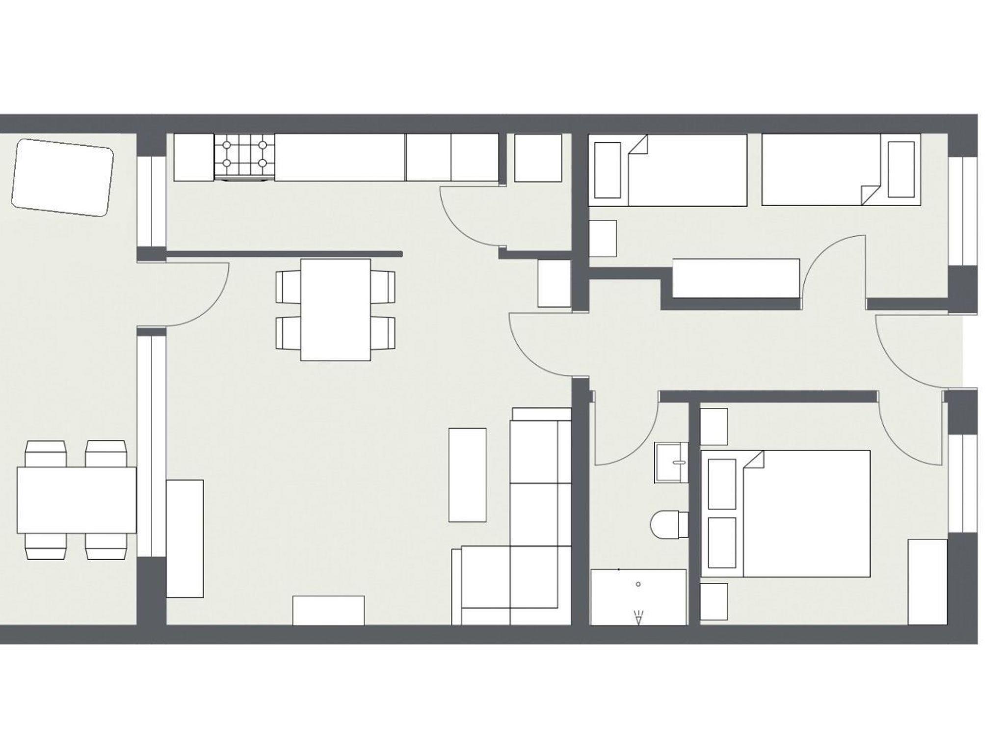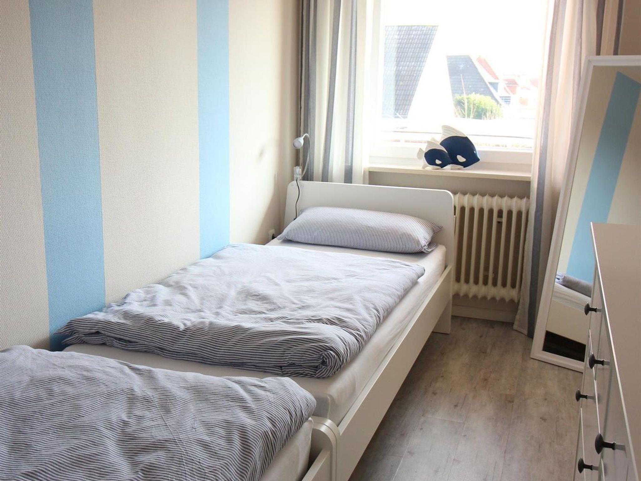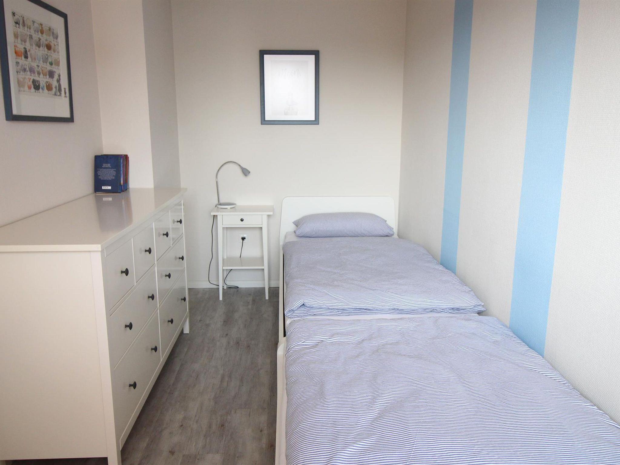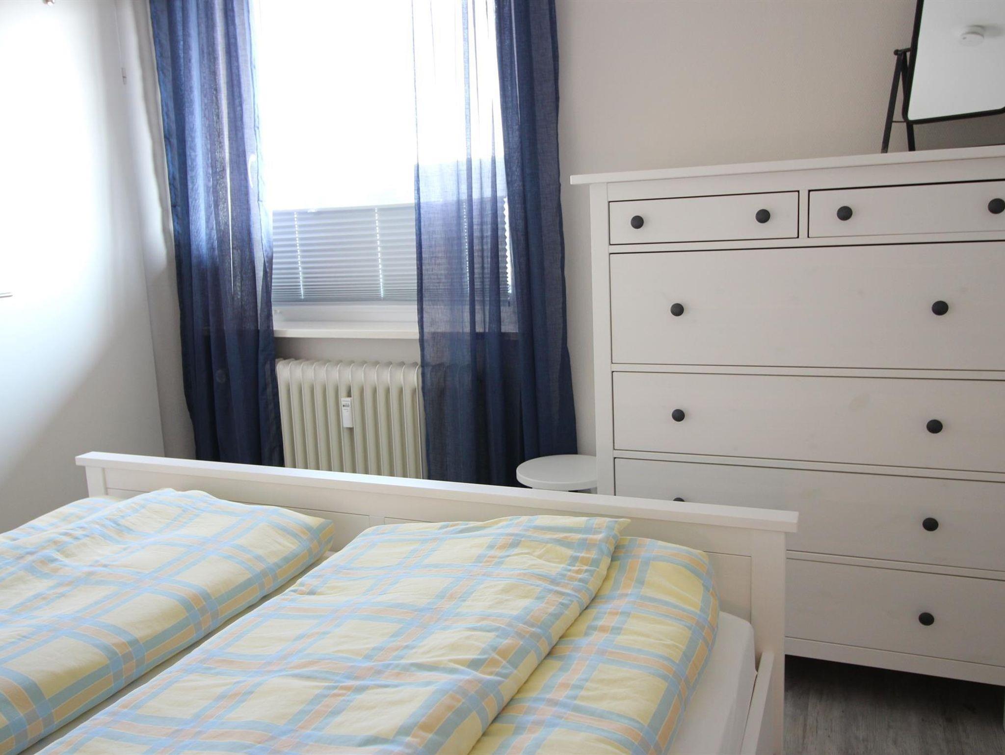 Gemütliche und helle Ferienwohnung mit 2 Schlafräumen: Doppelbett 200 x 160 cm (mit durchgehender Matratze) , 2 Einzelbetten 200 x 90 cm