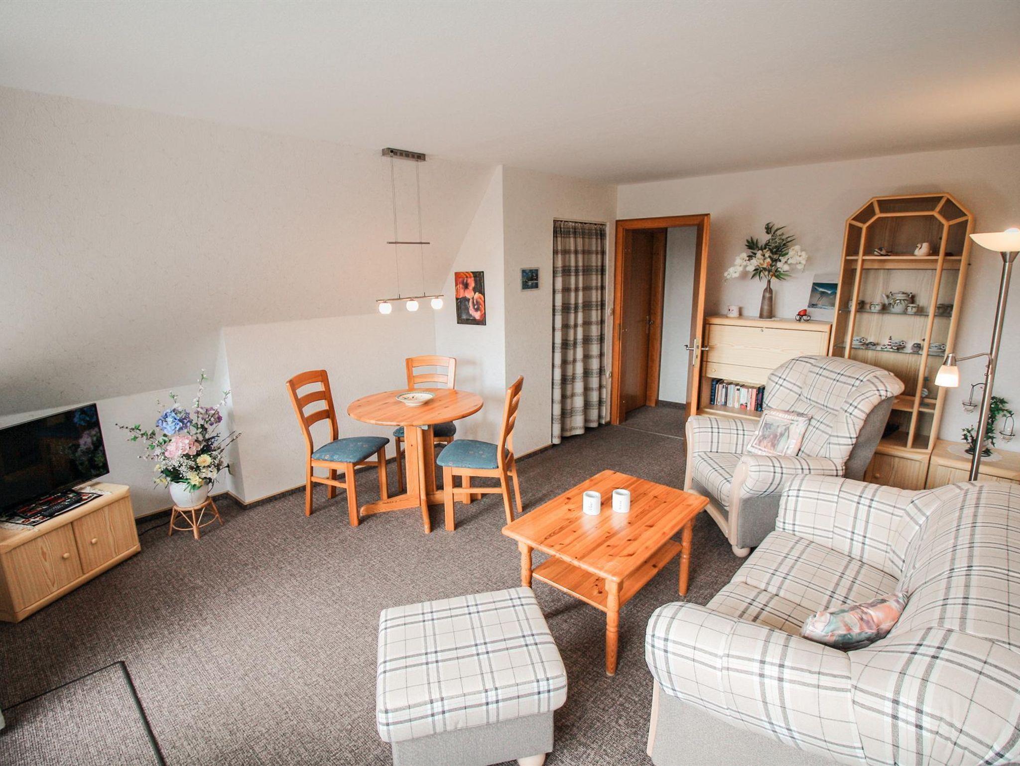 Die Ferienwohnung ist ausgestattet mit einem Wohnzimmer, separater Essküche und einem Bad mit Dusche/WC.