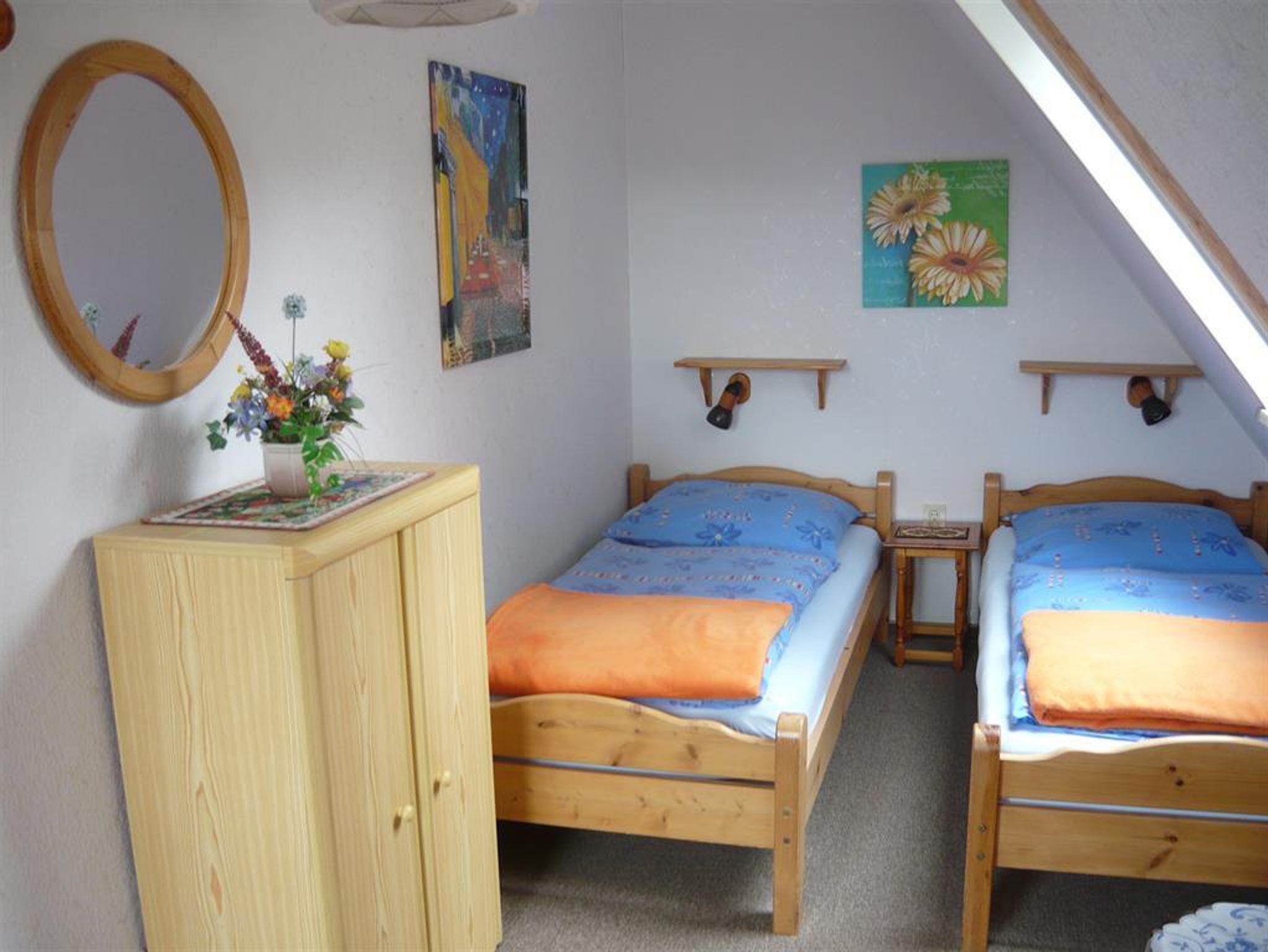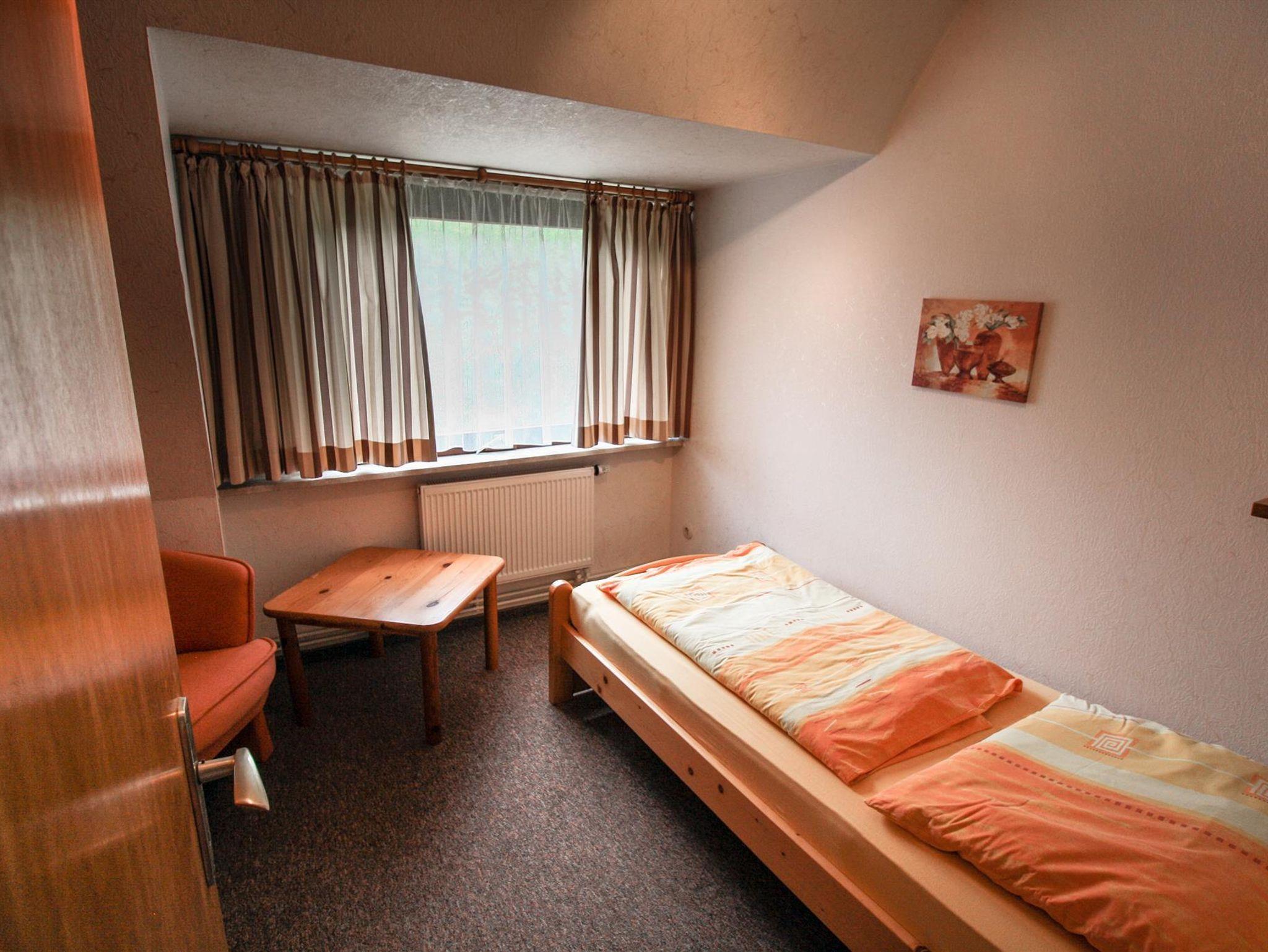 Schlafzimmer mit einem Einzelbett und ein weiteres Schlafzimmer mit zwei Einzelbetten