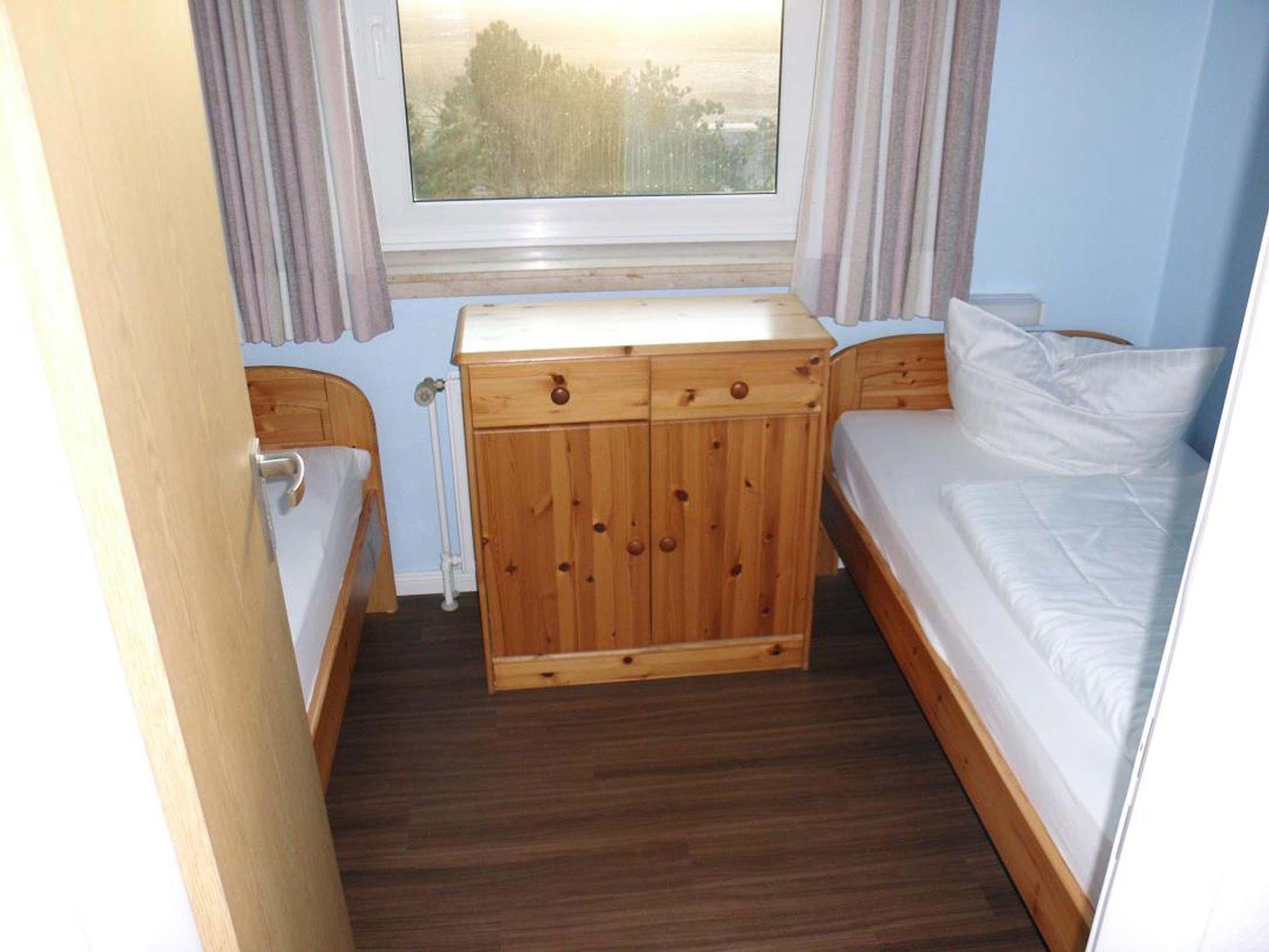 Schlafraum mit 2 Einzelbetten (je Bett 190 x 90), Wohn-Schlafraum mit Doppel-Schlaf-Couch, PVC-Fußboden, Sitzecke, Essecke, Küchenzeile mit Mikrowelle, Dusch/WC, Kabel-TV, Durchwahltelefon, Balkon, PKW-Platz-Nr. 59, Aufzug und Fahrradkeller.