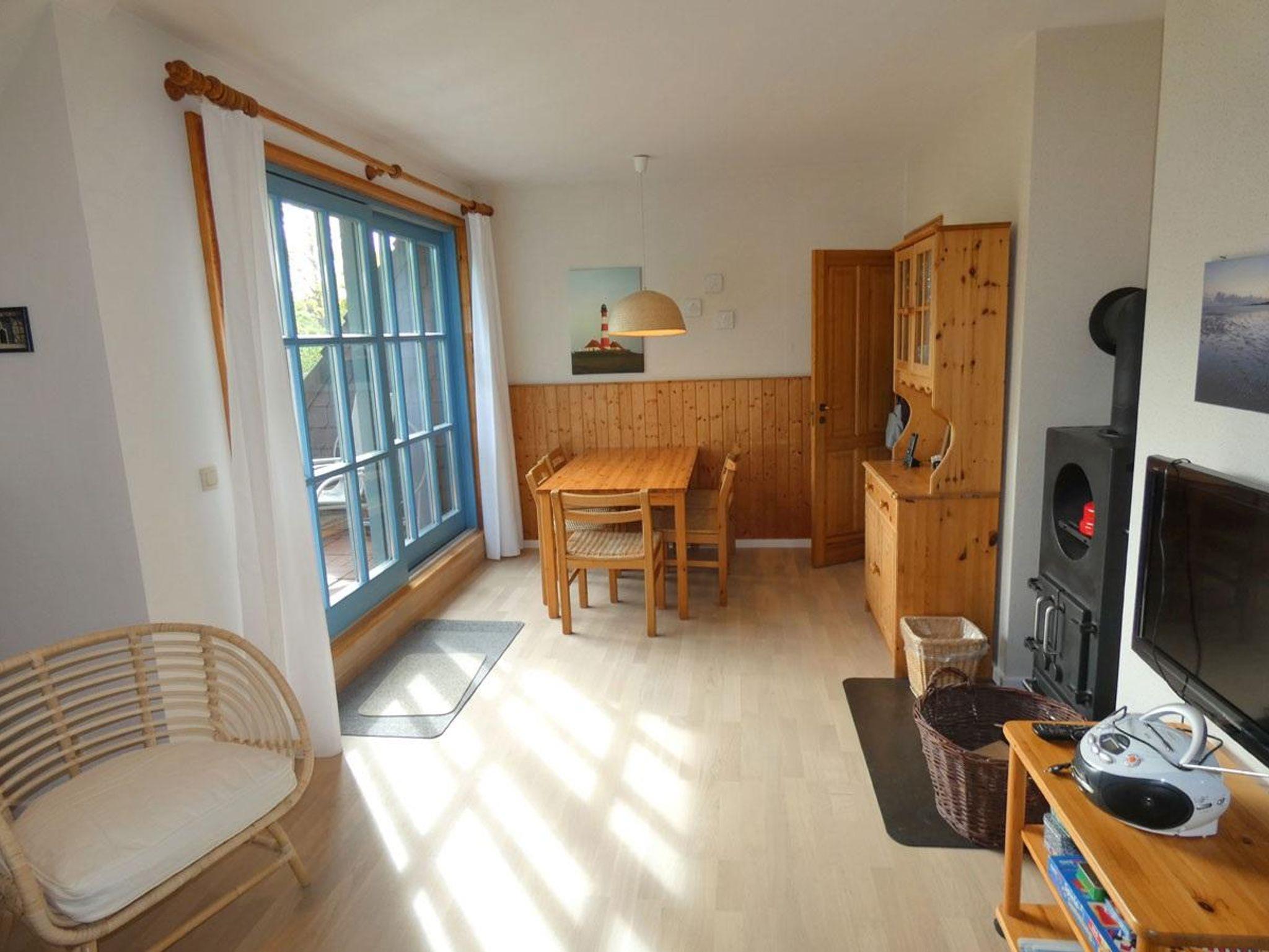 Gemütliche Ferienwohnung Rico in St. Peter-Ording mit Kamin, Balkon und großem Naturgarten für erholsamen Urlaub.