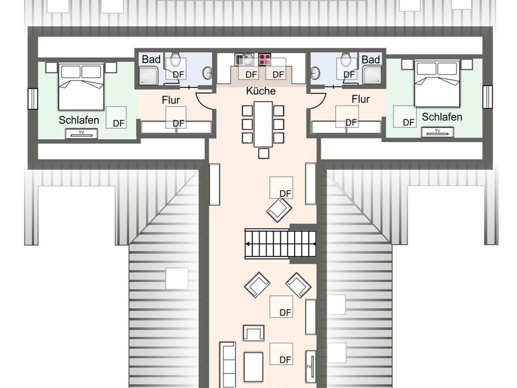 Luxuriöses Dachgeschoss-Loft mit Sauna, Spielplatz und Parkplatz in St. Peter-Ording, ideal für Familien und Paare.