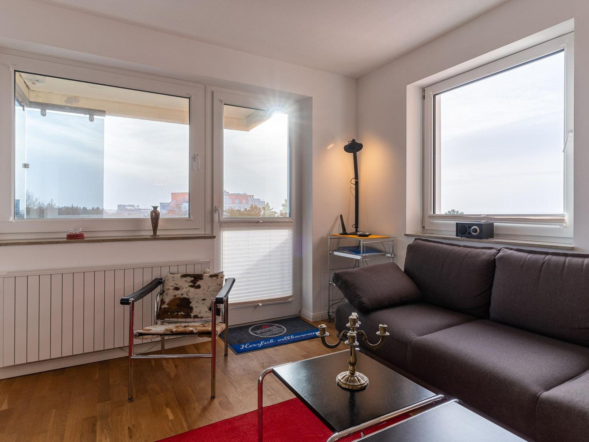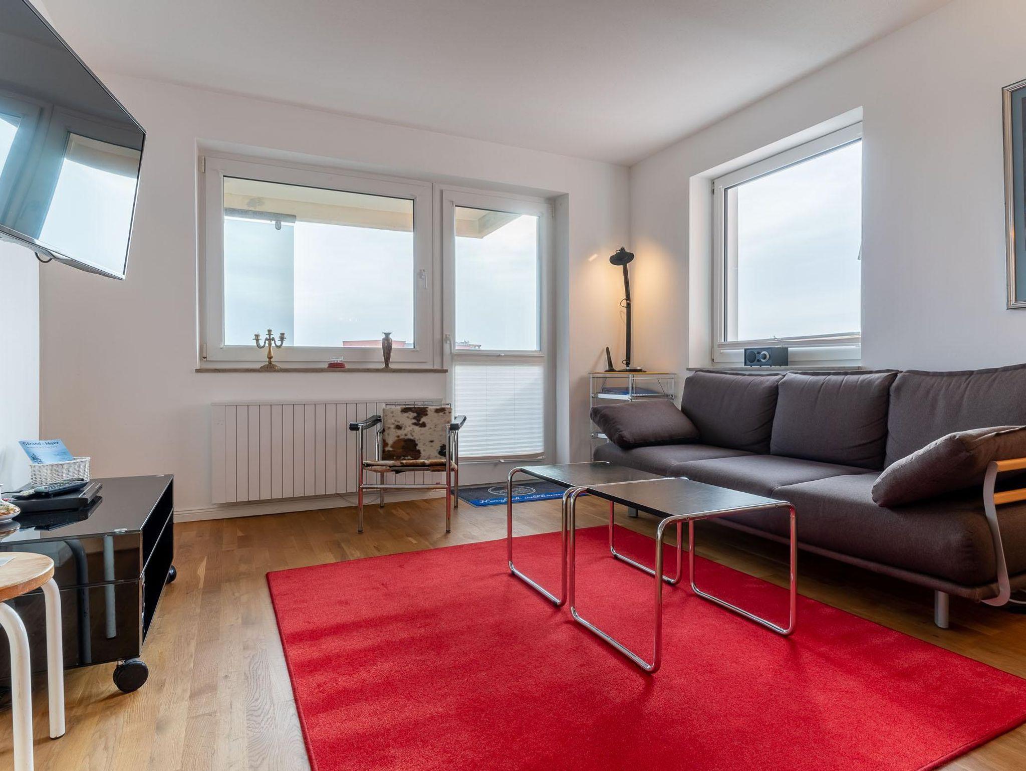 Die gemütliche 3-Zimmer Wohnung befindet sich im 5. Stock mit Balkon und Blick aufs Meer im Ortsteil Bad. In ca.5 Gehminuten erreichen Sie das Badzentrum mit Flaniermeile und die Dünen-Therme Zur Seebrücke mit Übergang zum Strand sind es nur wenige Minuten zu Fuß.