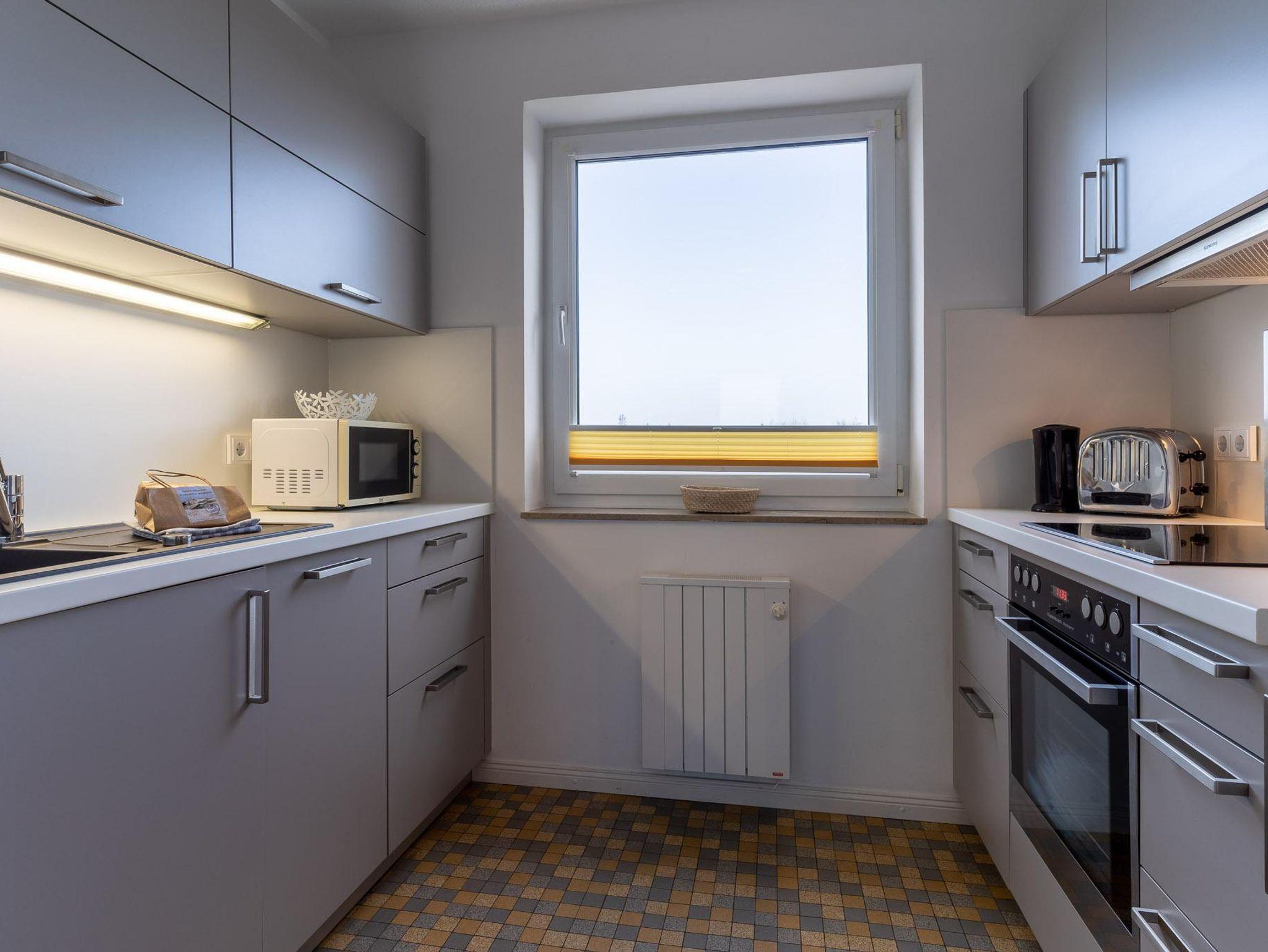 Die Wohnung hat eine separate Küche, ein Duschbad und eine separate Toilette.