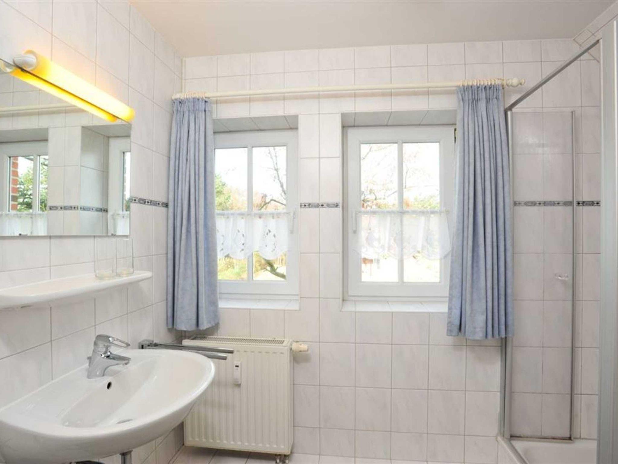 Badezimmer (Duschbad) mit Dusche, WC, Tageslicht und Föhn.