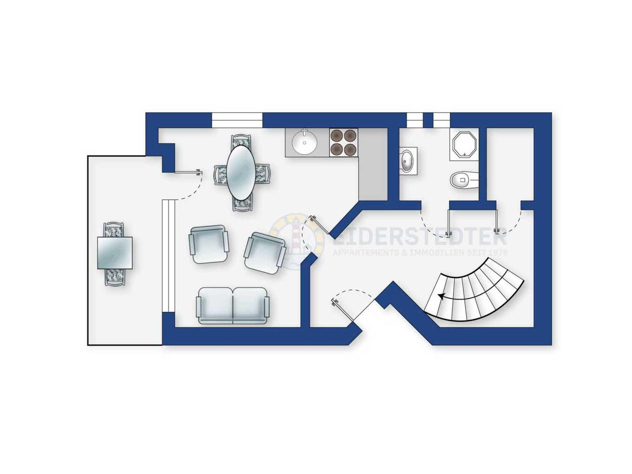 Gemütliche 2-Zimmer-Ferienwohnung Strandstar im Haus Dünen un Diek mit ca. 60 qm auf 2 Ebenen (OG, DG) für bis zu 4 Personen (Wohlfühlbelegung: max. 2 Erwachsene). Zentrale Lage im Ortsteil Bad in St. Peter-Ording. Sehr praktisch an einer Bushaltestelle gelegen (kostenlose Ortsbusse mit Kurkarte). Genießen Sie sonnige Momente auch auf Ihrem Südbalkon.