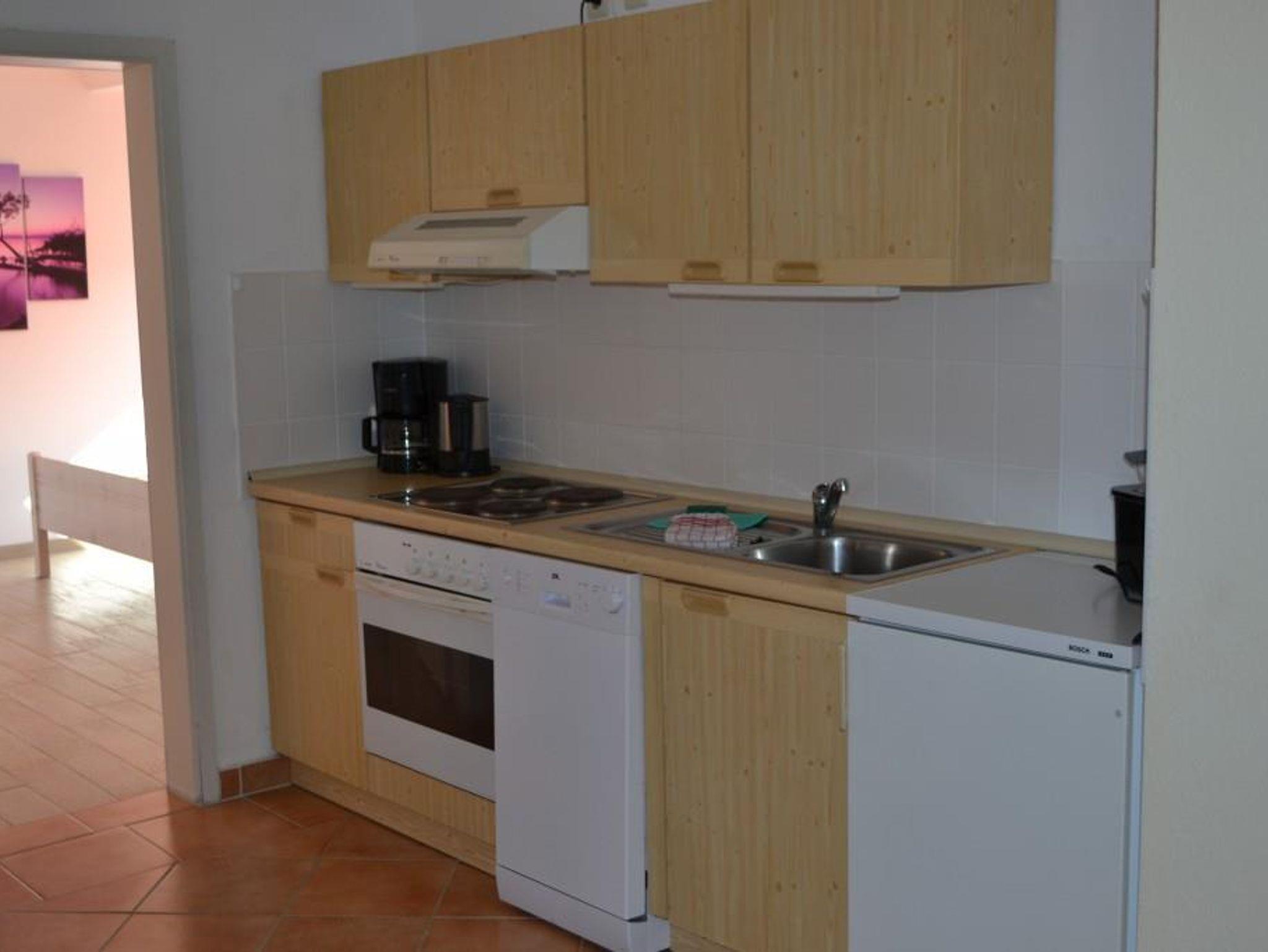 Wohnraum mit Essbereich, Sat-TV und offene Küche, Geschirrspülmaschine